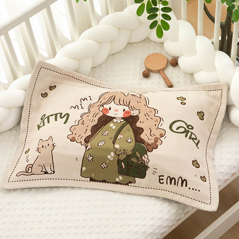 순수한 면 거즈 만화 어린이 베개 케이스 싱글 새로운 모든 것을 포함하는 아기 가구 면 두꺼운 베개 내부 라이너 커버스토어 가기