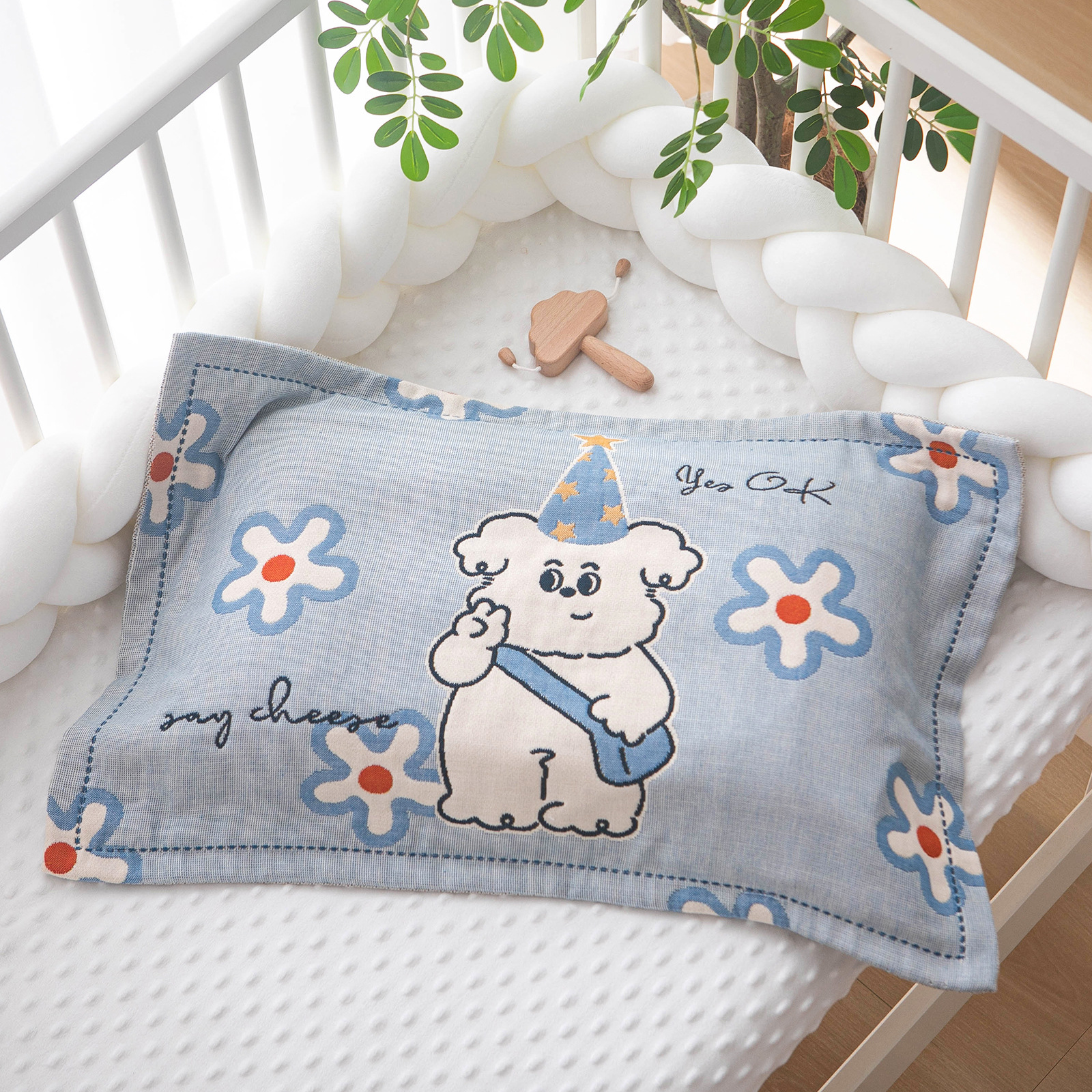 纯棉纱布儿童枕套,外径40X60cm,适合30X50cm和35X55cm枕芯。纯棉材质,柔软透气,a类材质,纯棉洗后会有点缩水