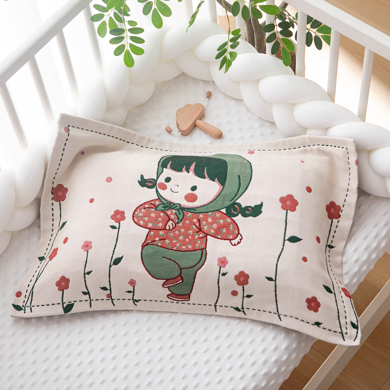 순수한 면 거즈 만화 어린이 베개 케이스 싱글 새로운 모든 것을 포함하는 아기 가구 면 두꺼운 베개 내부 라이너 커버