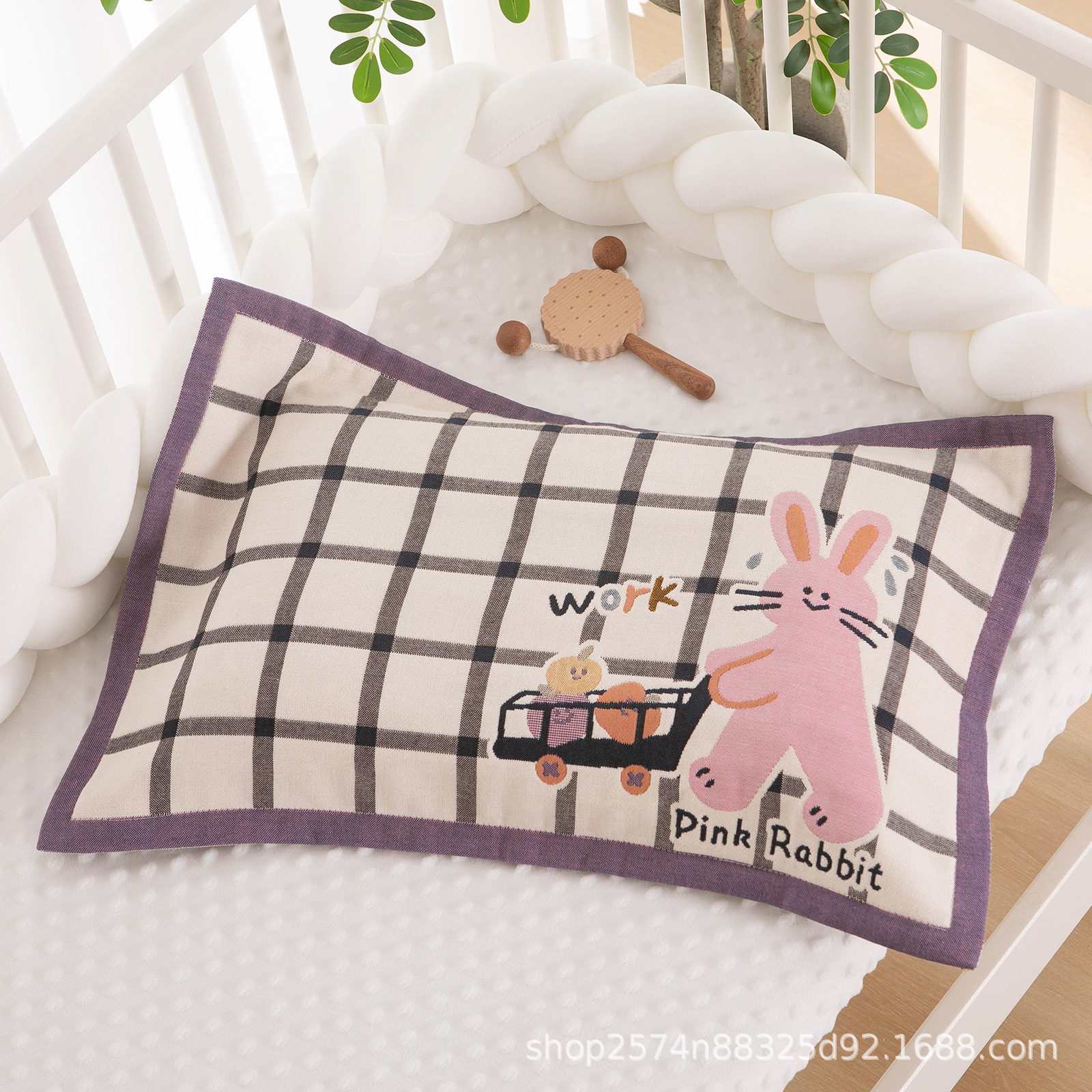 • 보라색 체크무늬 토끼베갯잇-(1팩)