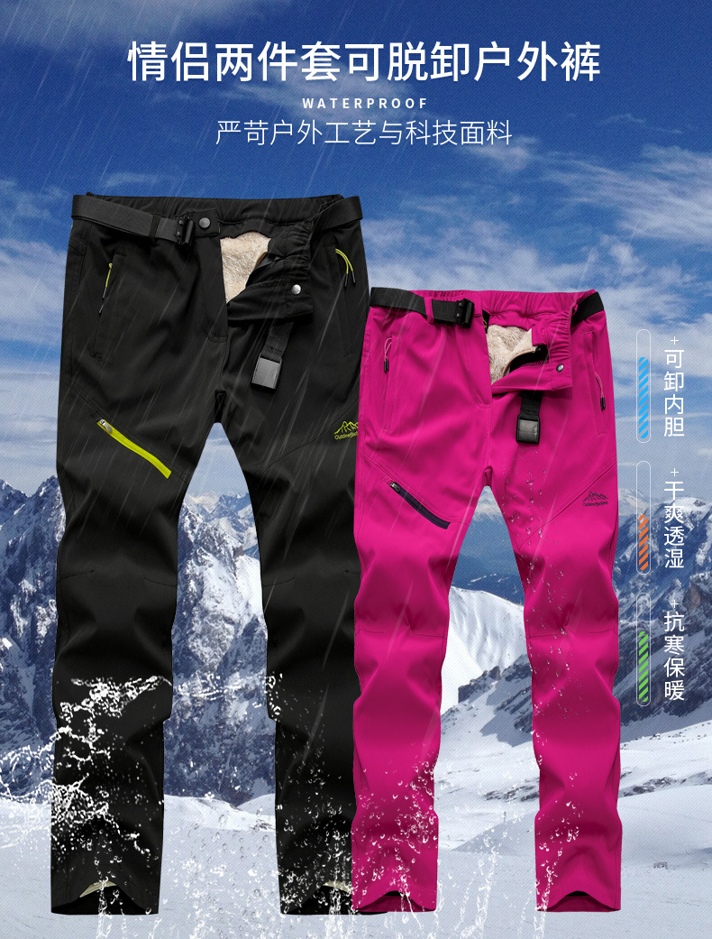가을 겨울 남성용 및 여성용 아웃도어 바지, 벨벳 및 두꺼운 탈착식 라이너, 따뜻하고 방풍 및 방수, 와이드 하이킹 바지스토어 가기