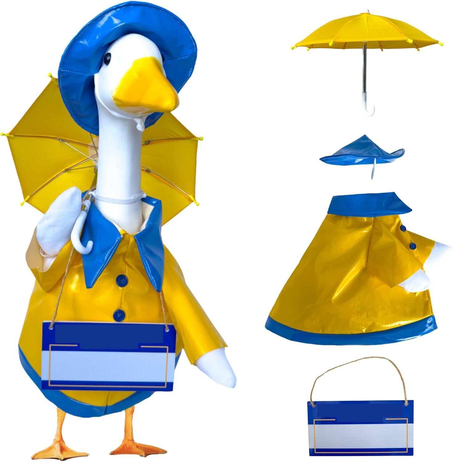 • 파란색과 노란색의 라벨이 붙은 비옷(우산 포함)