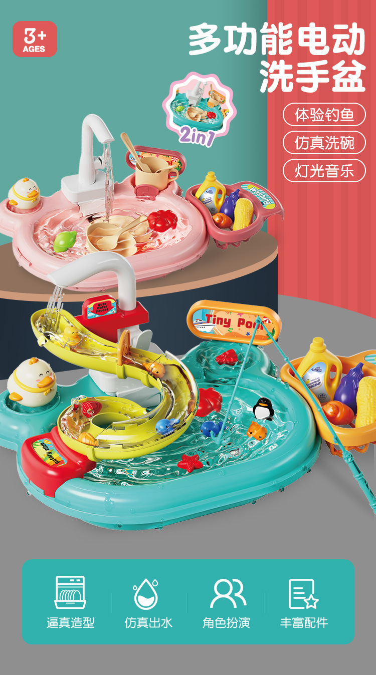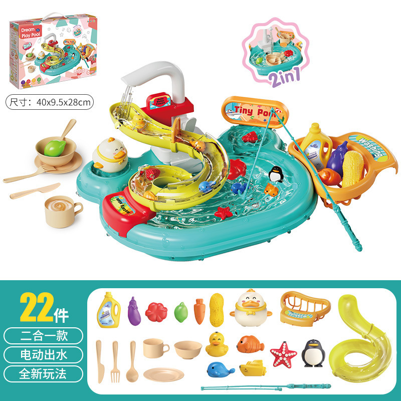 국경을 넘는 어린이 낚시 및 물놀이 전동 조명 낚시장 부모-자녀 상호작용 세트 장난감 물 분사 전동 물놀이 장치스토어 가기