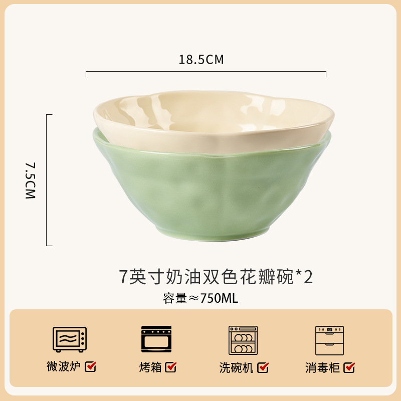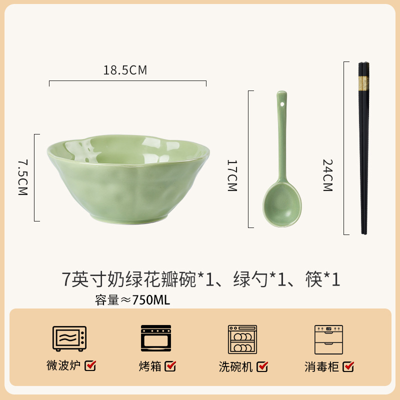 • 1 7inch 꽃잎 그릇 1 국자 1 합금 젓가락 - 크림 그린