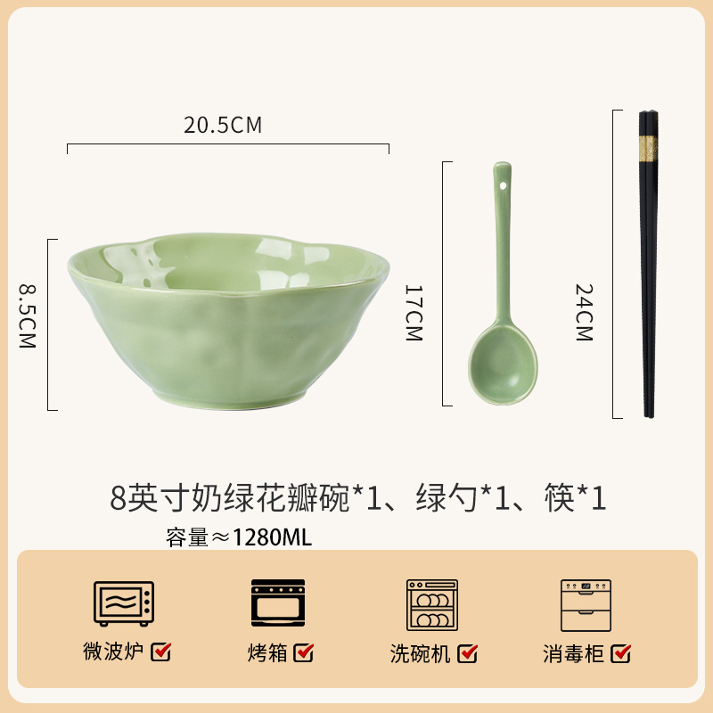 • 1 8inch 꽃잎 그릇 1 국자 1 합금 젓가락 - 크림 그린
