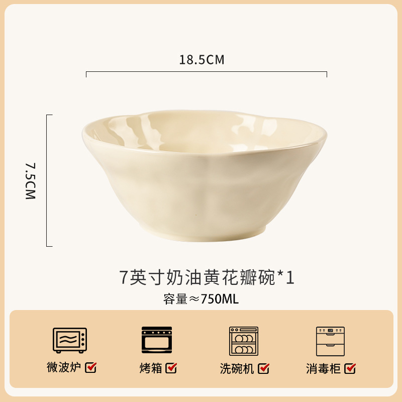 • 1 7inch 꽃잎 그릇 1 국자 1 합금 젓가락 - 버터 옐로우