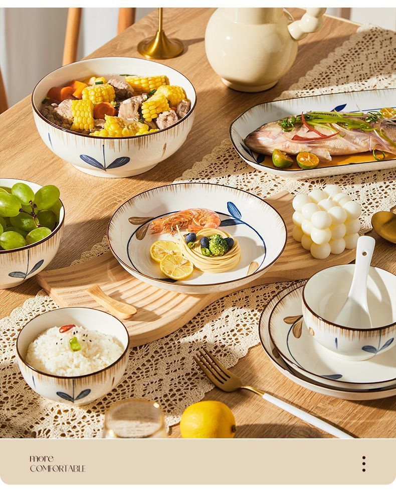유약 컬러 식기 그릇과 접시 세라믹 그릇 세트 가정용 접시 일본식 집들이 밥 그릇 2025 새로운 스타일 고가치스토어 가기