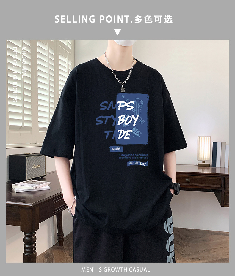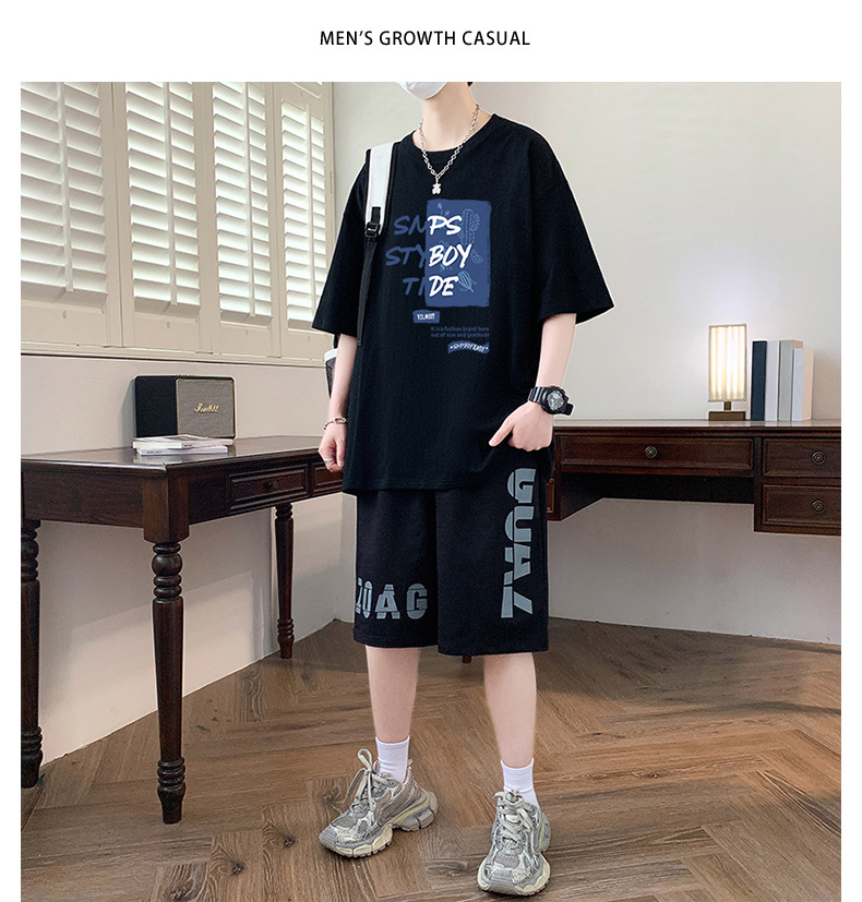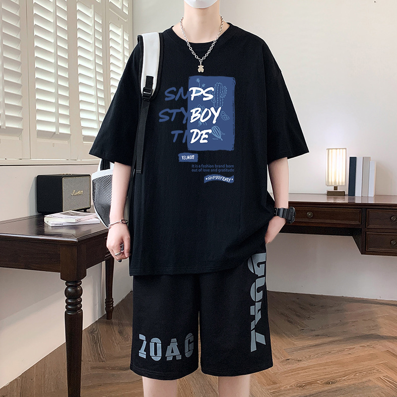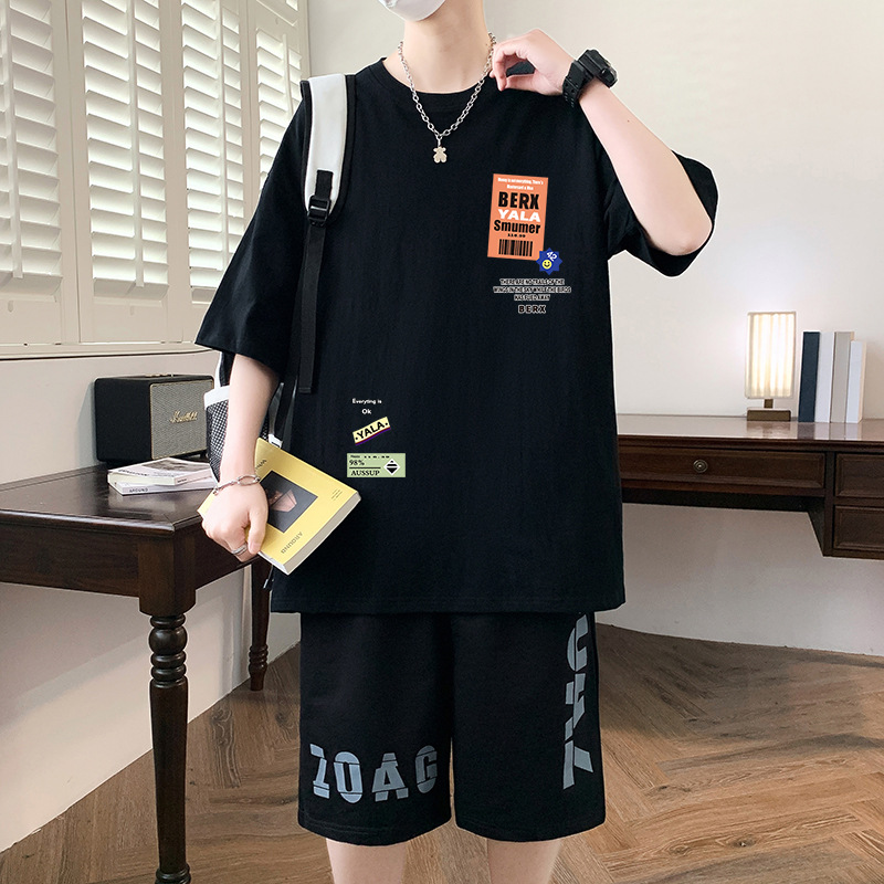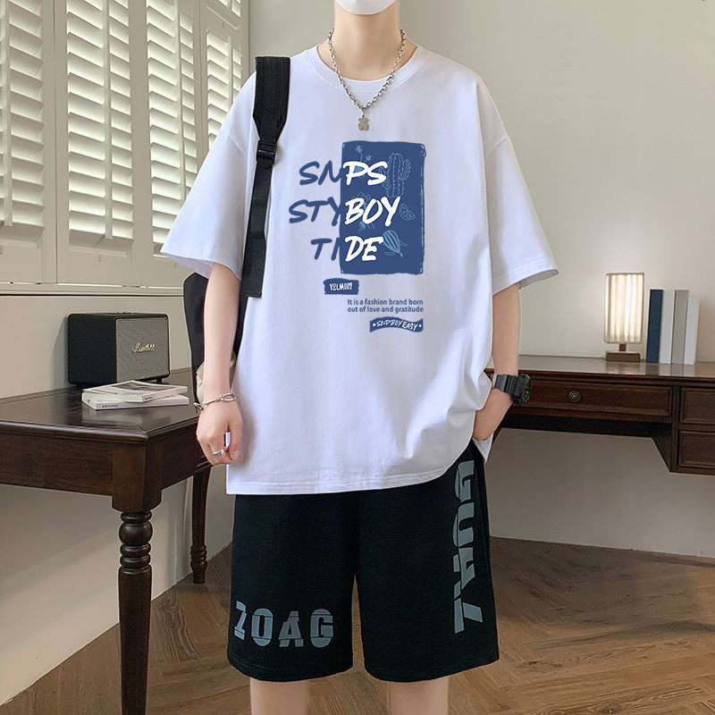 면화 십대 여름 느슨한 세트 소년 반팔 티셔츠 새로운 고등학생 패션 레저 도매스토어 가기