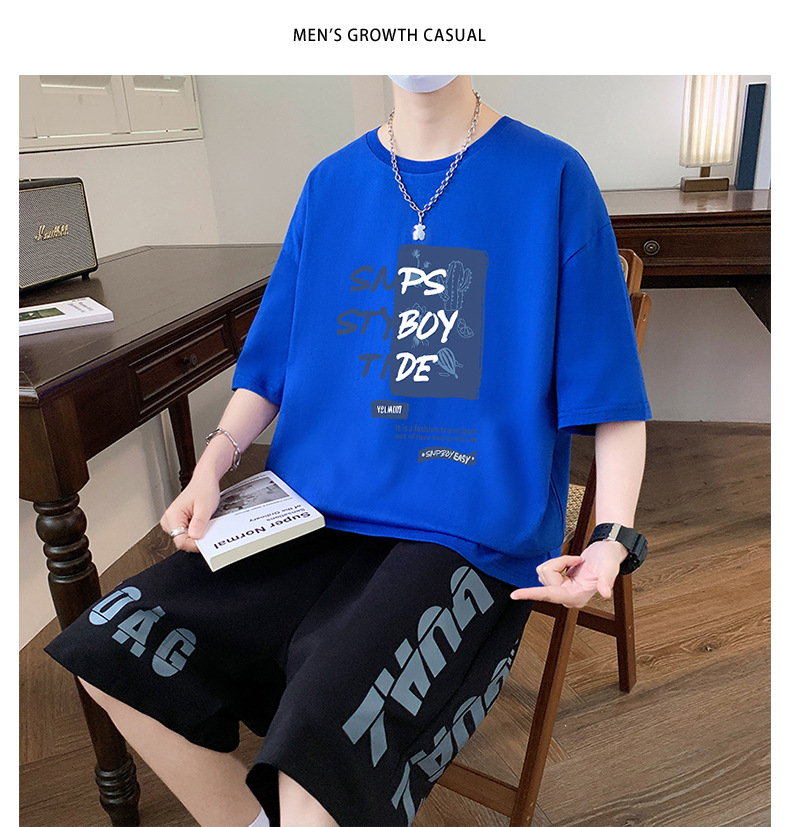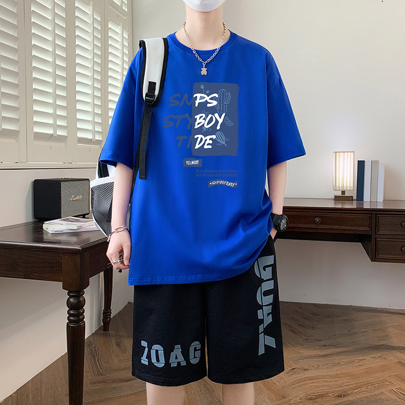 면화 십대 여름 느슨한 세트 소년 반팔 티셔츠 새로운 고등학생 패션 레저 도매