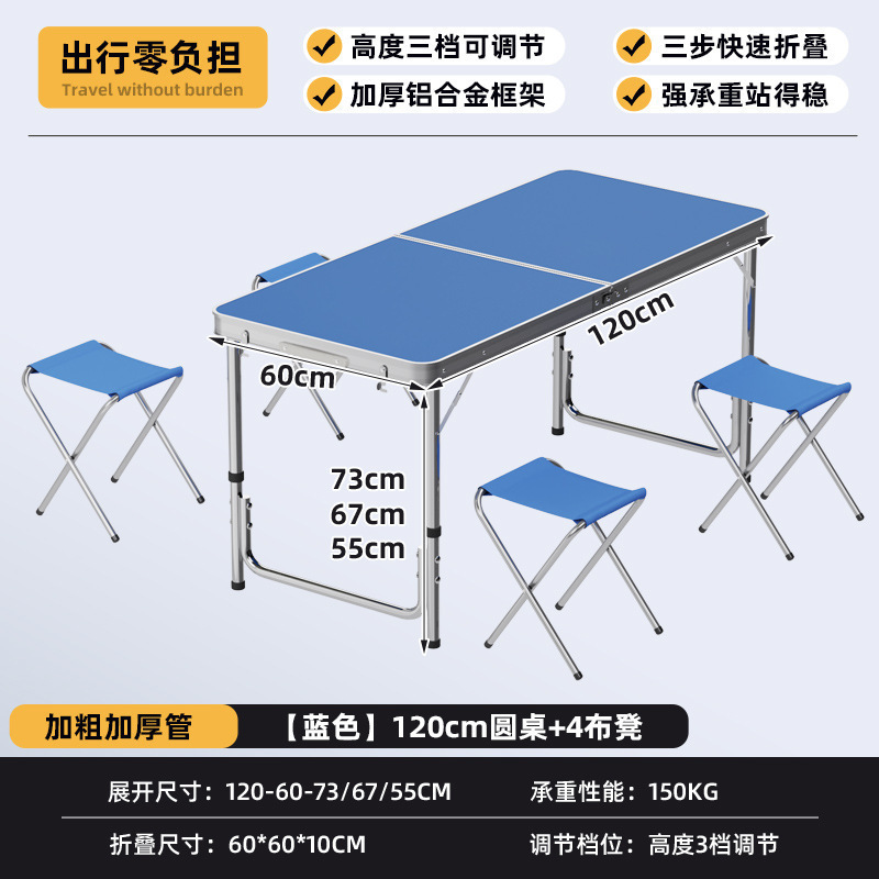 • [설치 불필요? 두꺼운 사각 튜브] 120cm 스카이블루 + 알루미늄 스툴 4개