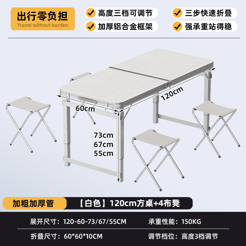 • [설치 불필요? 두꺼운 사각 튜브] 120cm 스노우 마운틴 화이트 + 알루미늄 스툴 4개