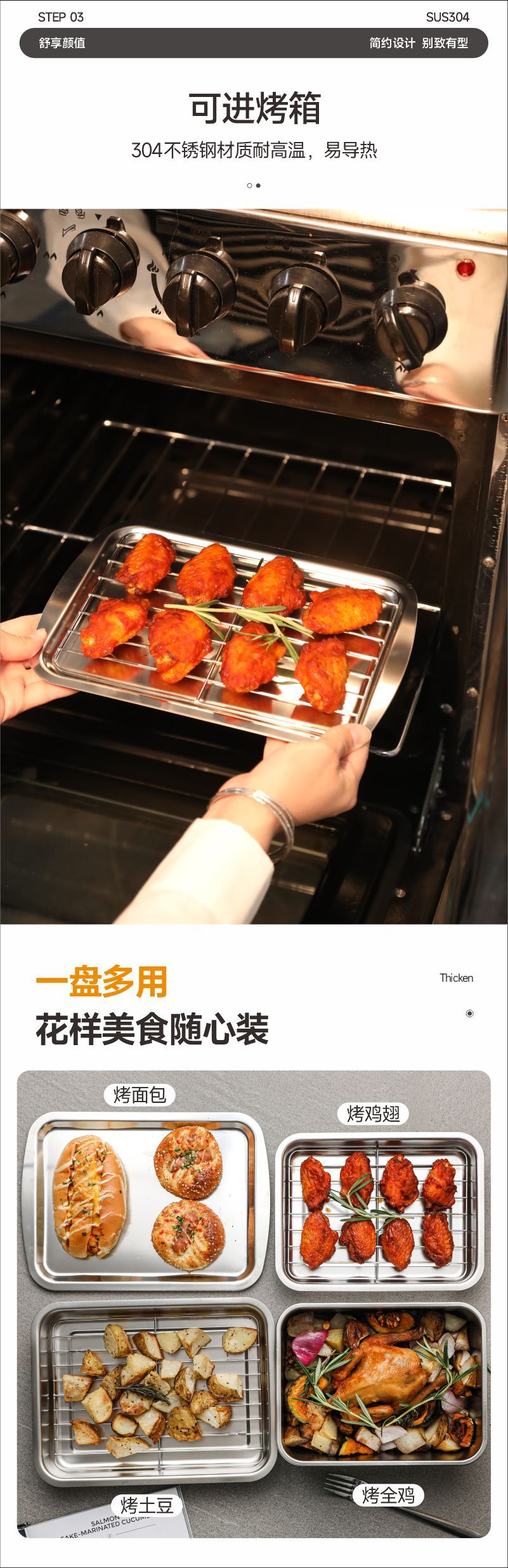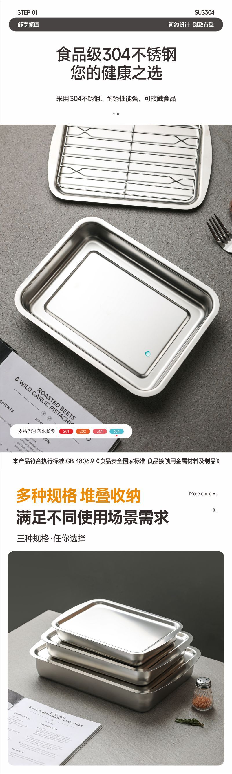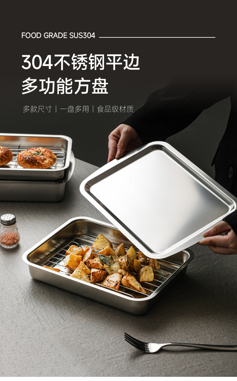 메쉬 랙이 있는 국경 간 304 스테인레스 스틸 접시, 상업용 평면 사각형 접시, 다중 사양 베이킹 팬, 이중층 두꺼운 트레이