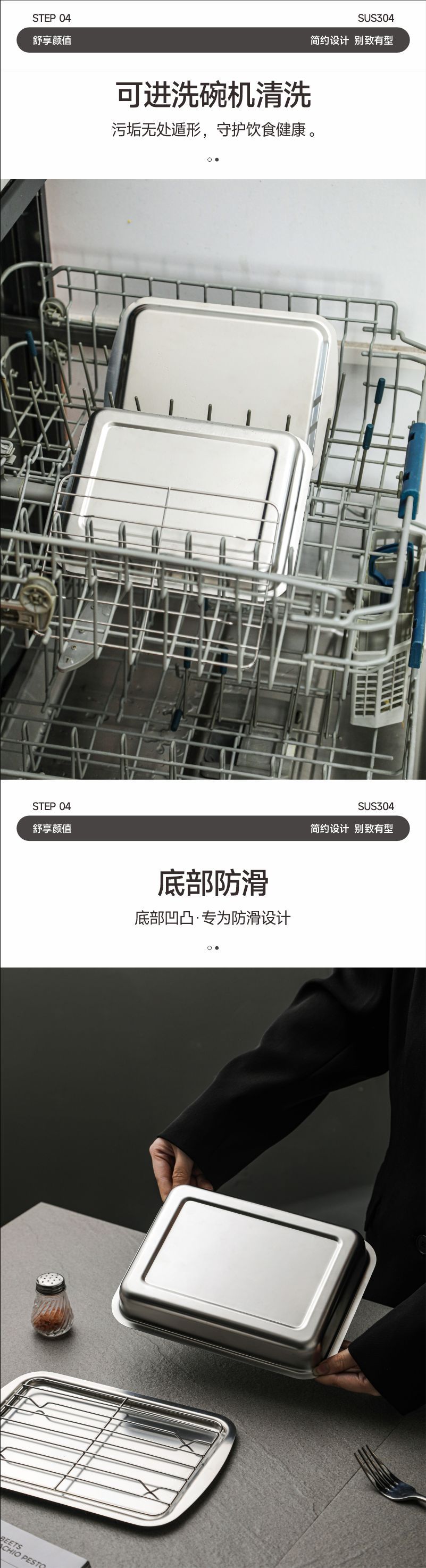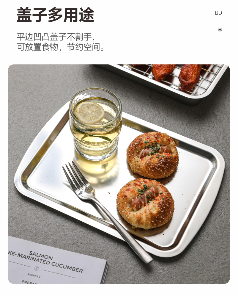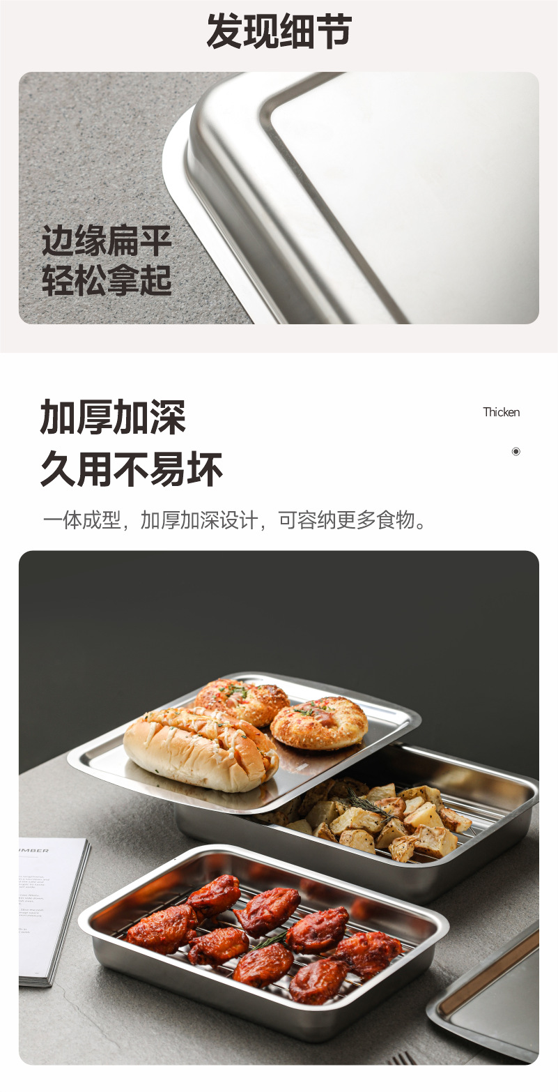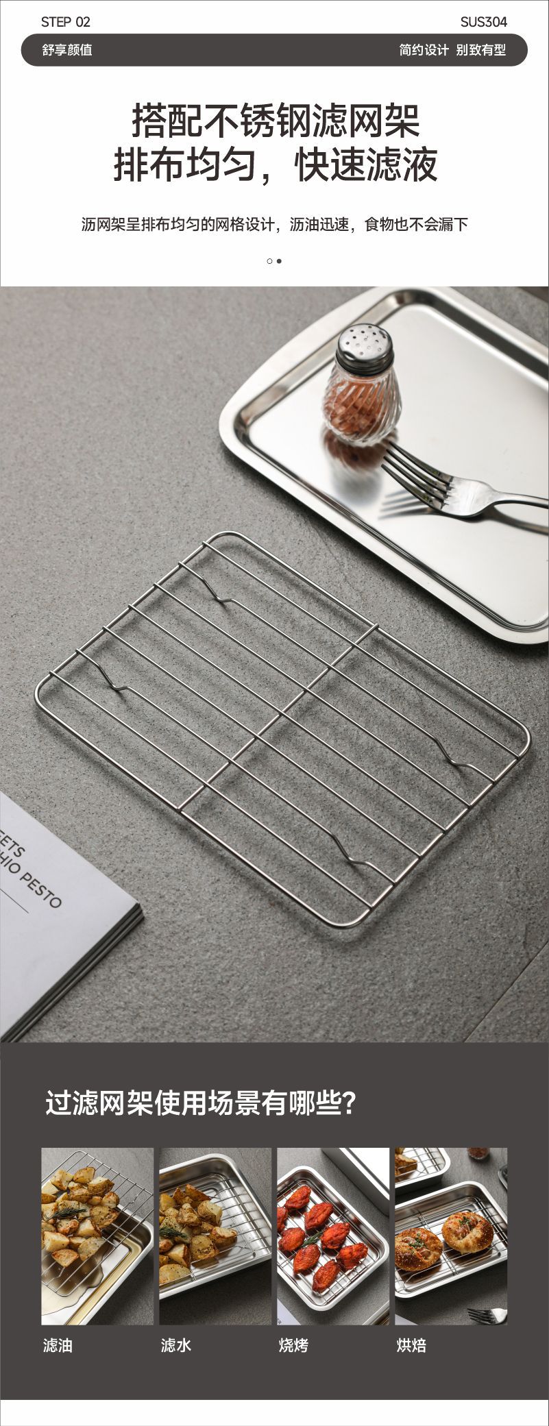 메쉬 랙이 있는 국경 간 304 스테인레스 스틸 접시, 상업용 평면 사각형 접시, 다중 사양 베이킹 팬, 이중층 두꺼운 트레이