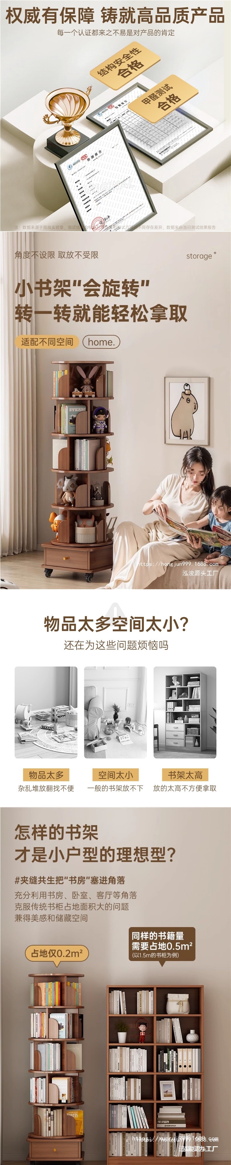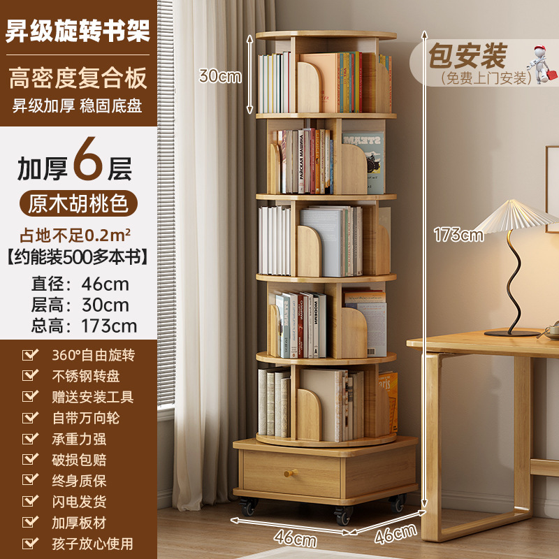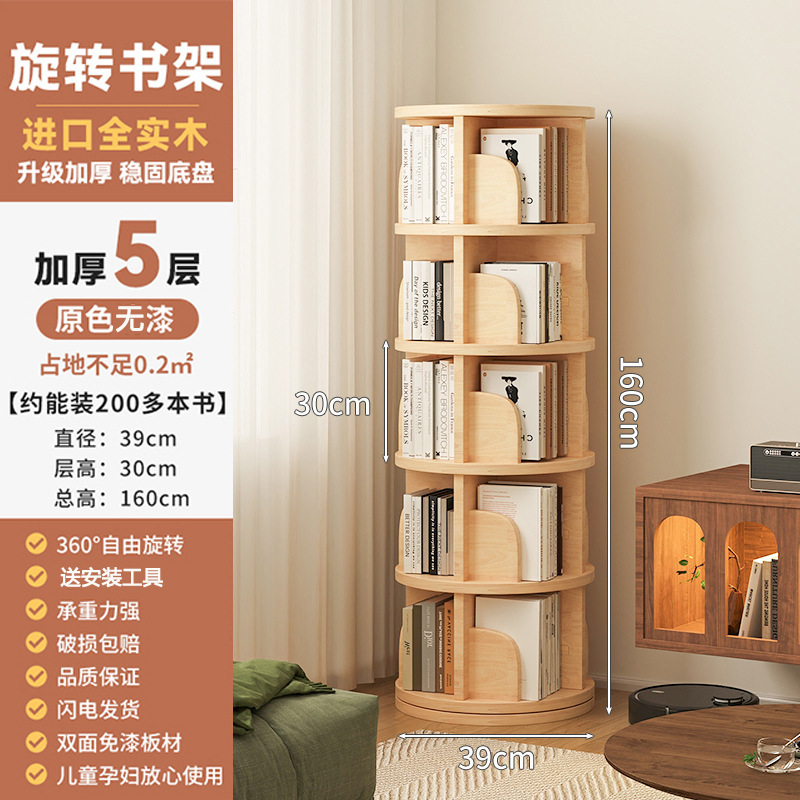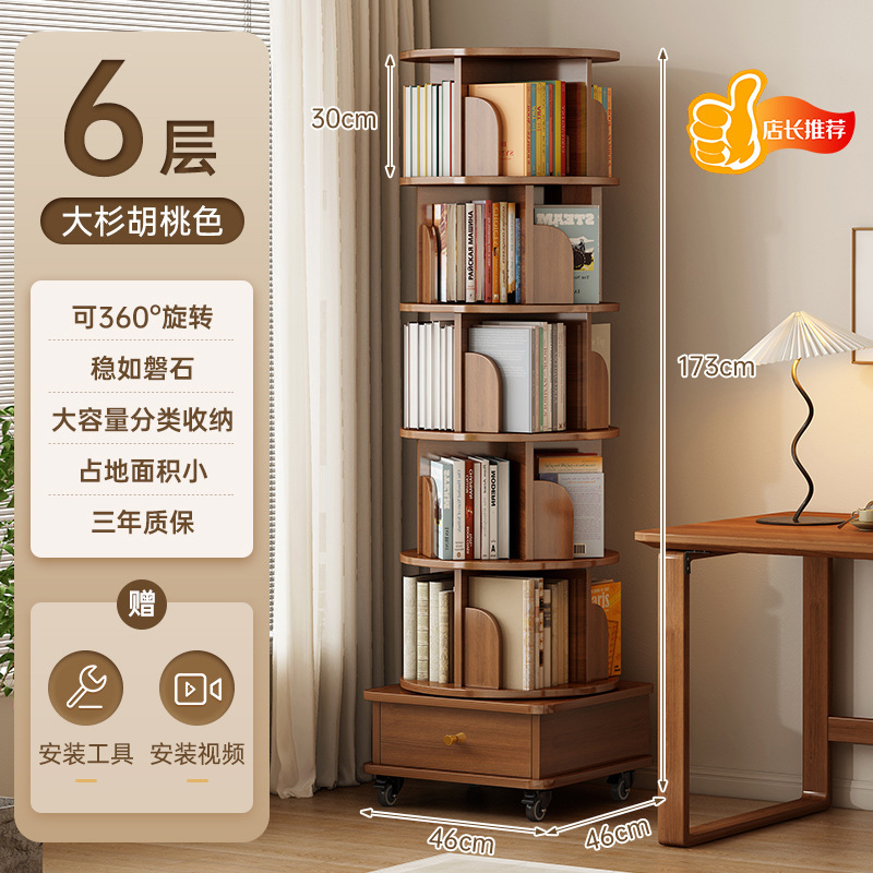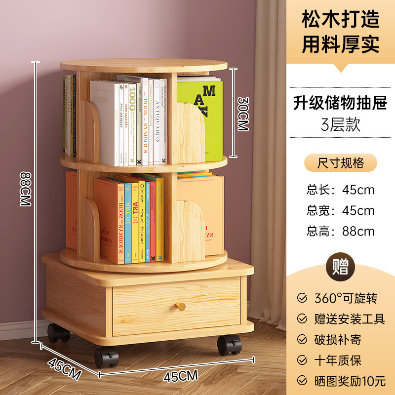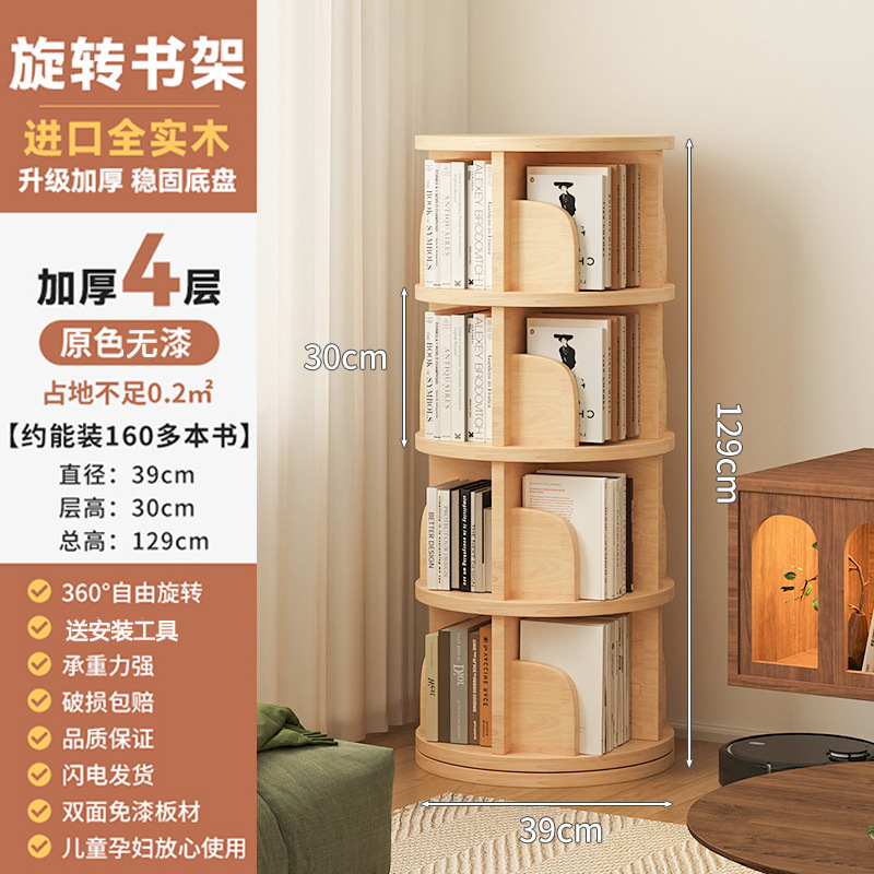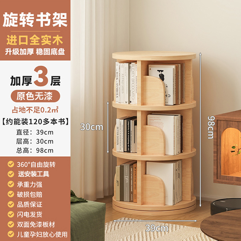 회전 책장 바닥 저장 랙 가정용 거실 저장 캐비닛 간단한 저장 캐비닛 학생 솔리드 우드 컬러 캐비닛 책장