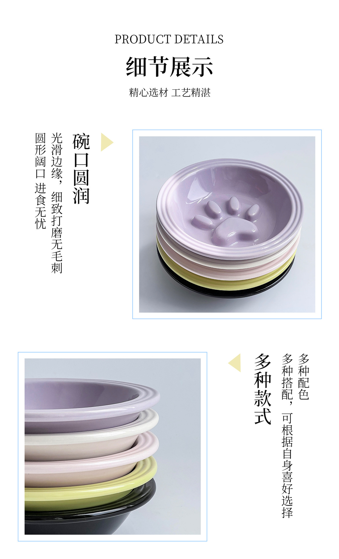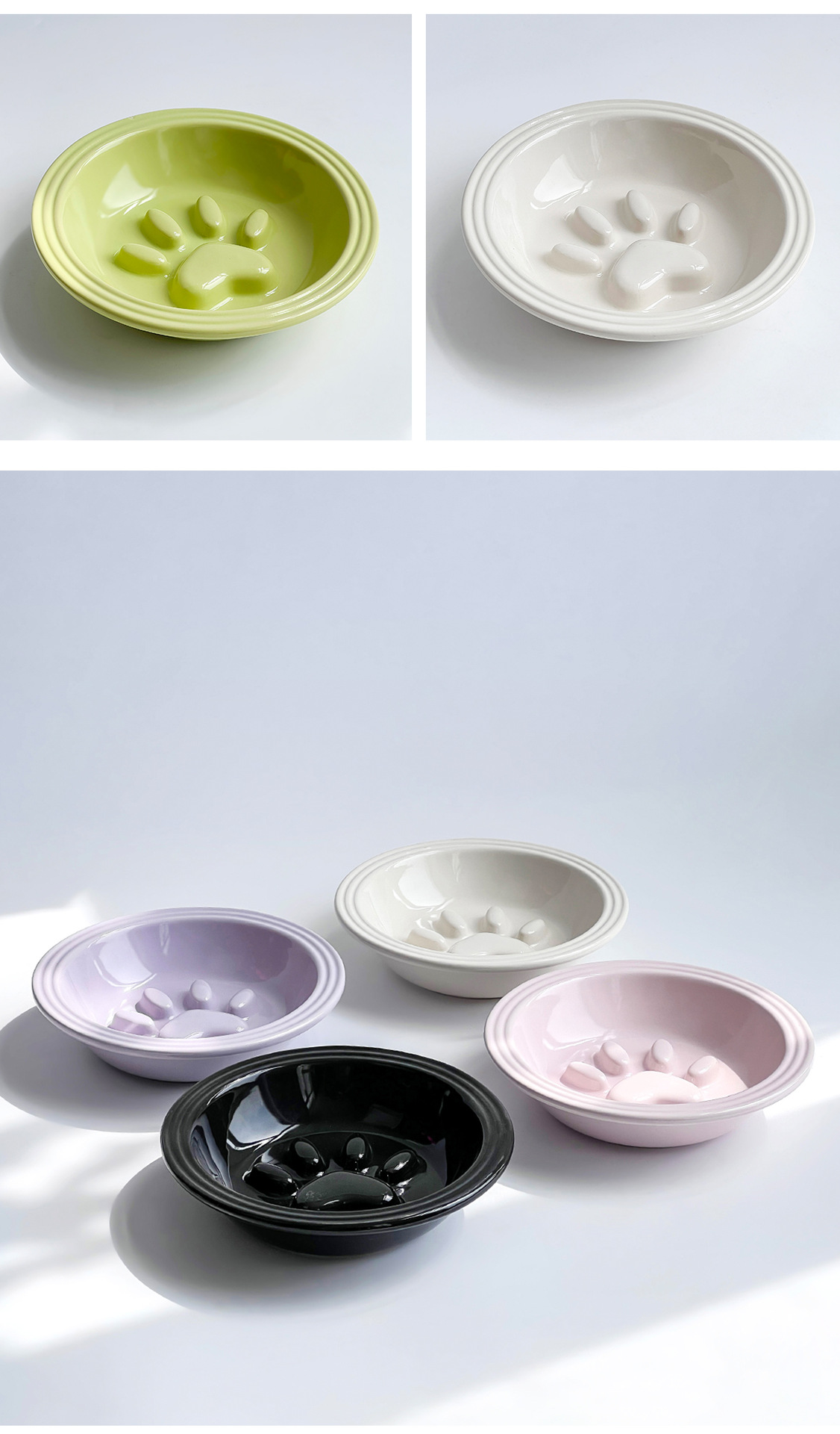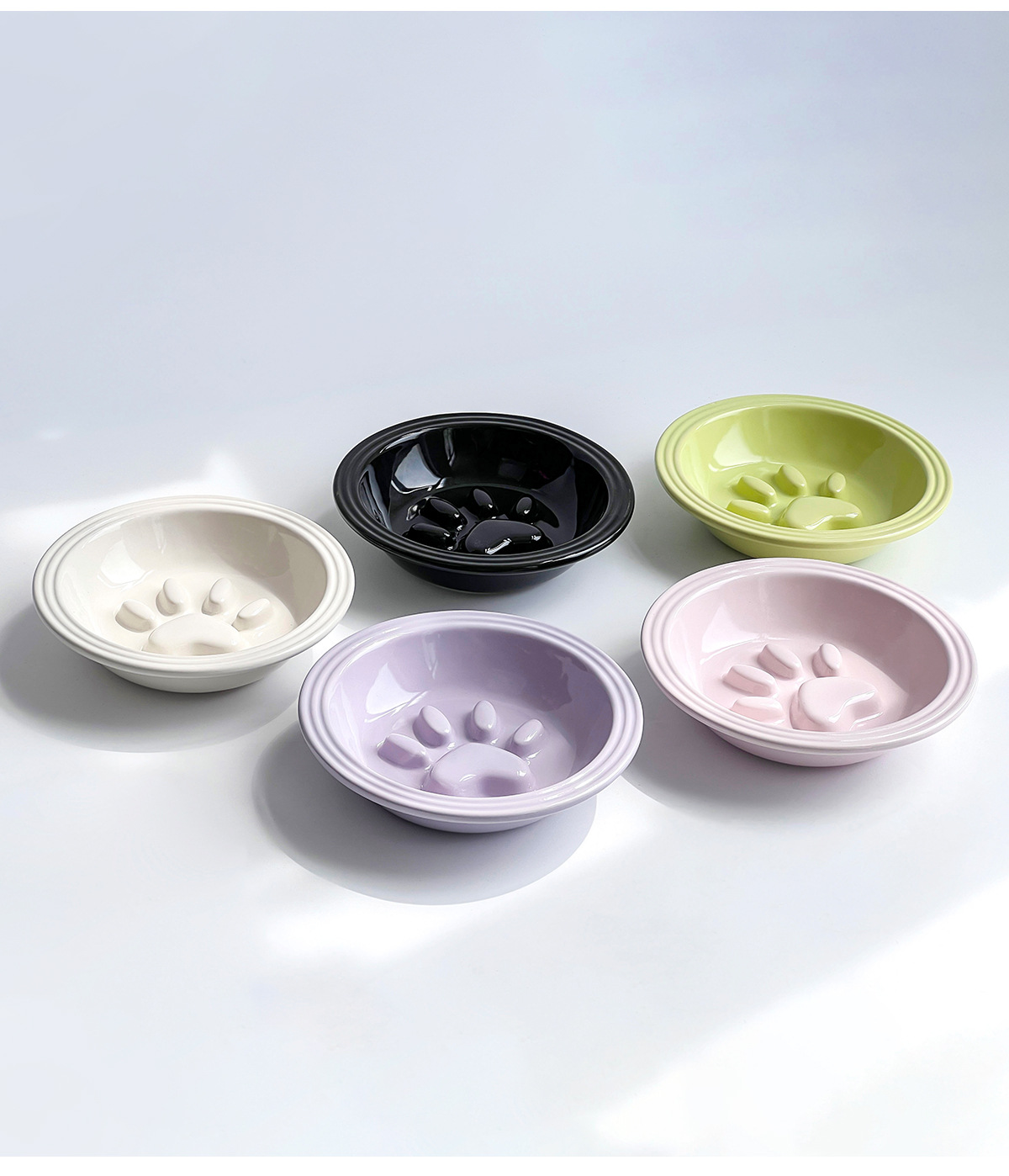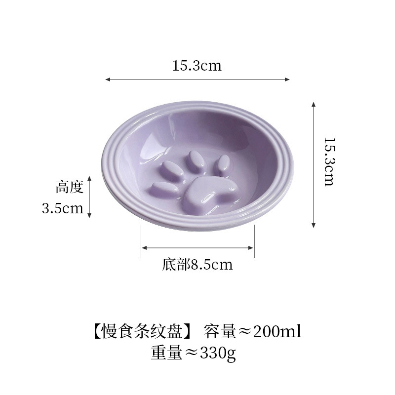 간단한 스타일 줄무늬 가장자리 보호 고양이 발톱 느린 음식 접시 높은 색상 가치 세라믹 애완 동물 그릇 고양이 그릇 개 그릇 안티 노크 마시는 그릇스토어 가기