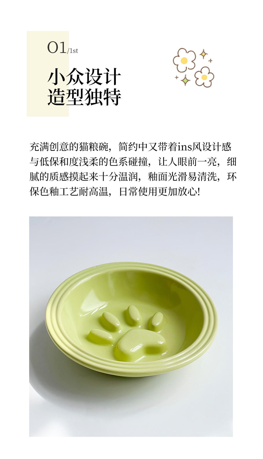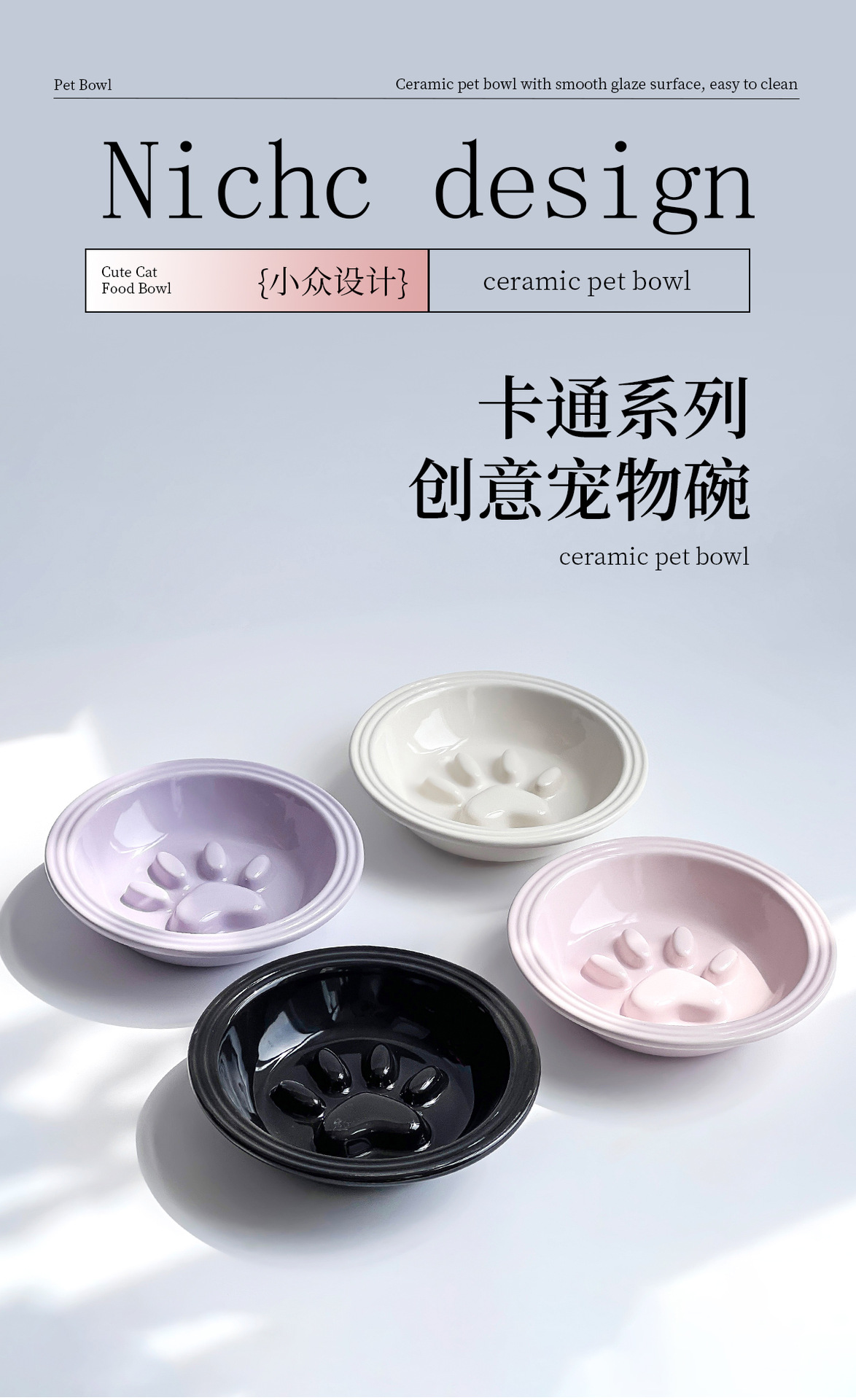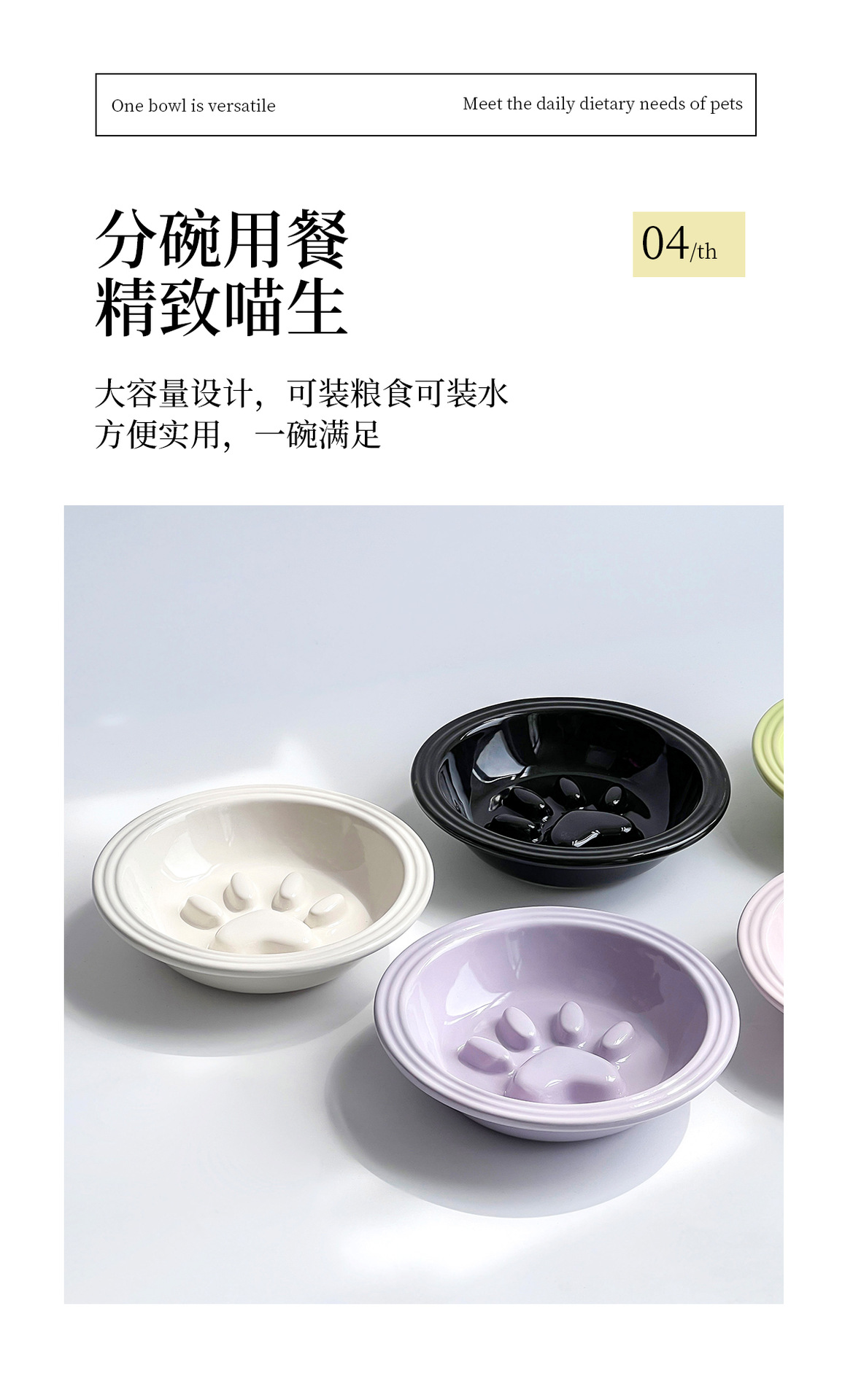 간단한 스타일 줄무늬 가장자리 보호 고양이 발톱 느린 음식 접시 높은 색상 가치 세라믹 애완 동물 그릇 고양이 그릇 개 그릇 안티 노크 마시는 그릇스토어 가기