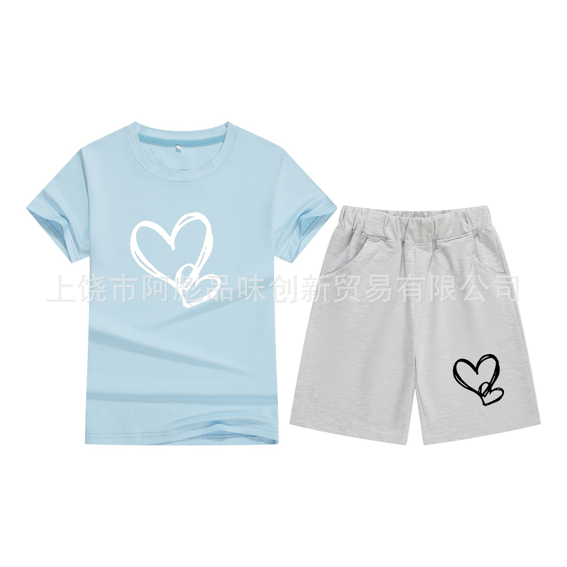아동용 여름 인기 반바지 반팔 슈트 트렌디 티셔츠 패셔너블한 5부 반바지 티셔츠 핫셀링 아마존 대외 무역