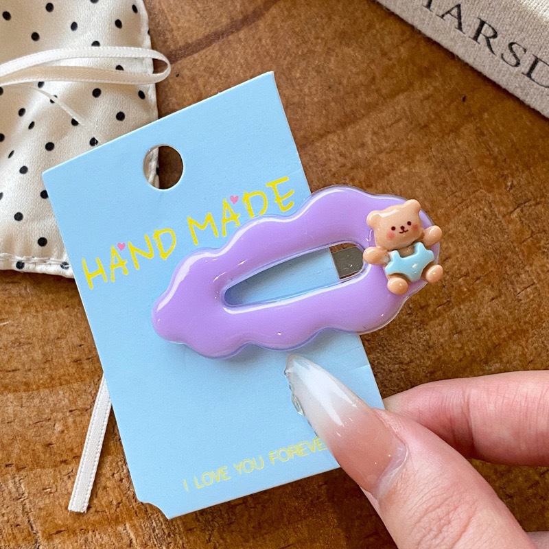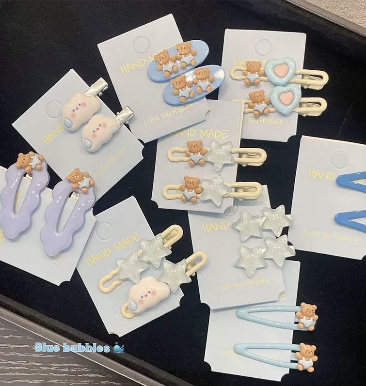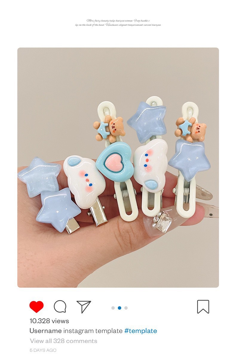 귀여운 구름 머리핀 여성 스타 사이드 앞머리 클립 어린이 푸른 곰 오리 지폐 클립 봄 머리핀 머리 장식스토어 가기