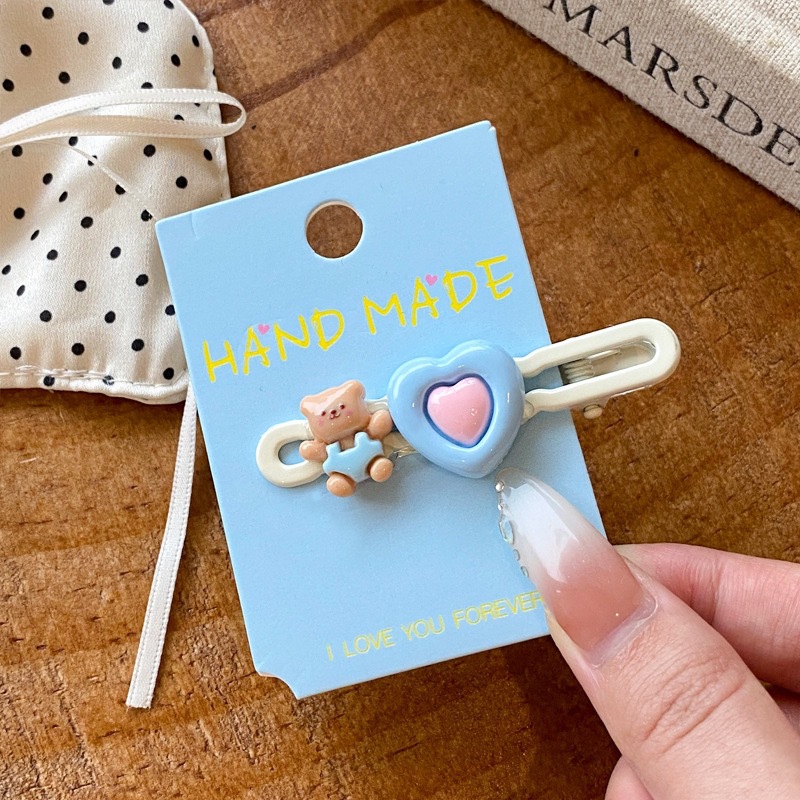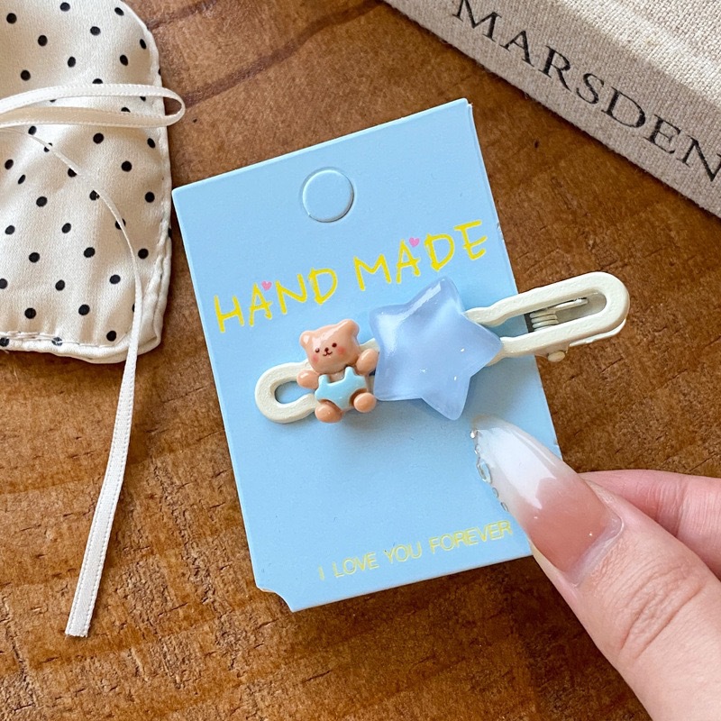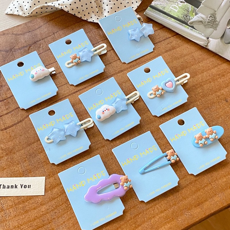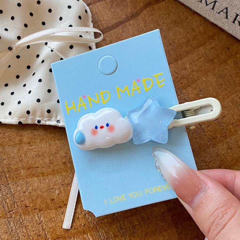 귀여운 구름 머리핀 여성 스타 사이드 앞머리 클립 어린이 푸른 곰 오리 지폐 클립 봄 머리핀 머리 장식