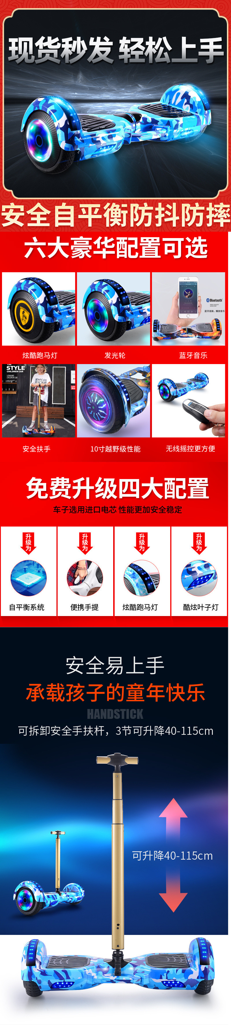 • 8inch 스포츠 힙합 컬러 [자체 균형 손떨림 방지 + 시계 + 글레어 휠]