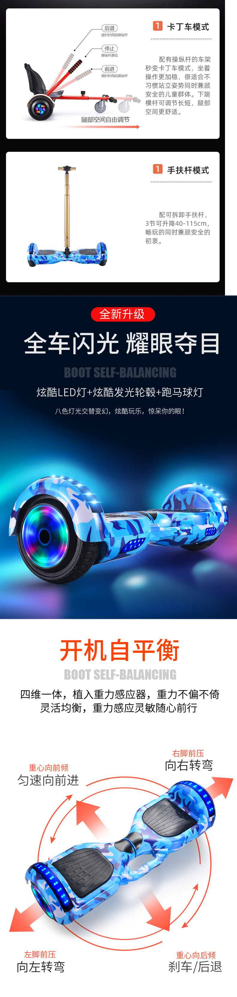 • 7inch 뮤지컬 위장 블루 [자체 균형 + 안전 손떨림 방지 + 눈부심 휠]