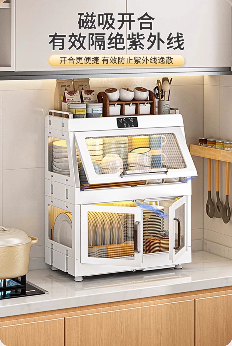 소독 찬장 가정용 더블 레이어 드레인 랙 접시 건조 보관 캐비닛 주방 조리대 그릇 젓가락 보관 랙