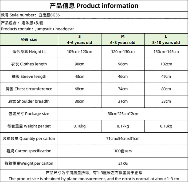 해골 의상 할로윈 테마 파티 흰색 유령 의상 어린이 역할 cos 흰색 유령 공연 의상