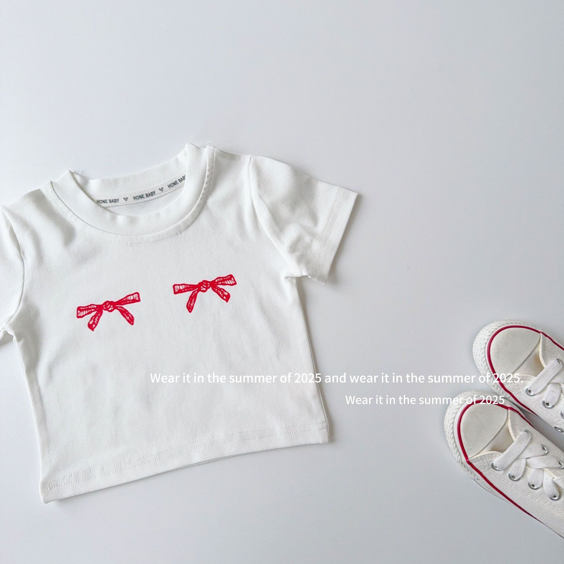 작은 스파이스 소녀 여름 뜨거운 유행 빨간 활 티셔츠스토어 가기