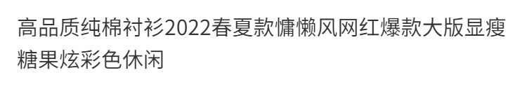 하이 퀄리티 면 셔츠 2025 봄과 여름 게으른 인터넷 인기 폭발 대형 판 슬림 사탕 다채로운 캐주얼스토어 가기