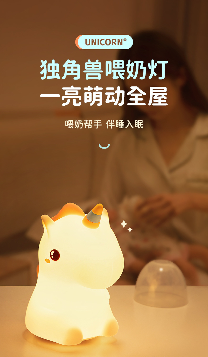 유니콘 박수 조명 인터넷 축하 폭발 만화 실리콘 밤 빛 잠자는 밤 먹이주기 고급 분위기 램프 테이블 램프스토어 가기