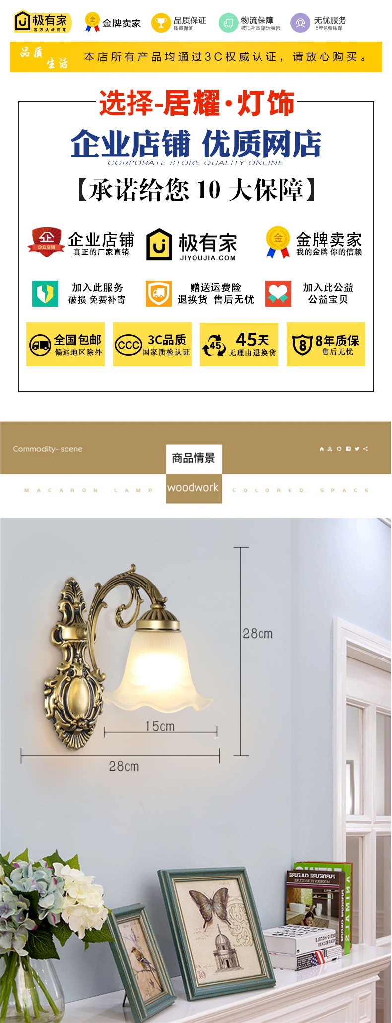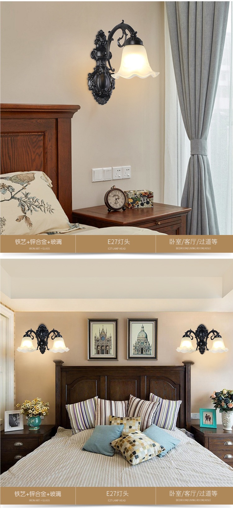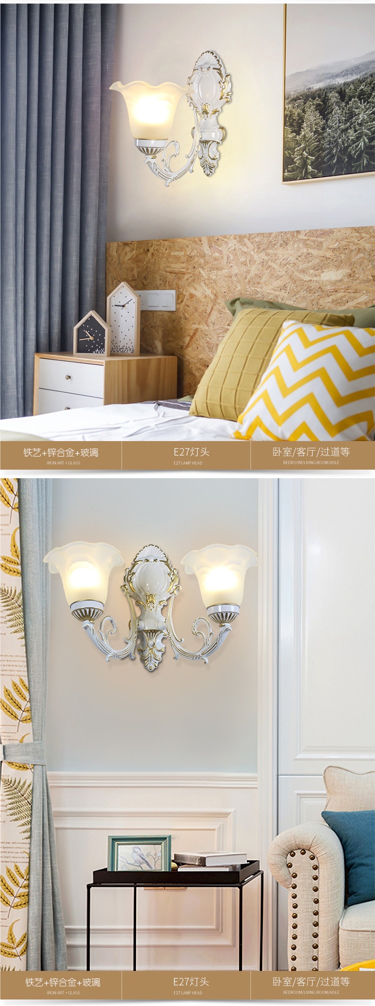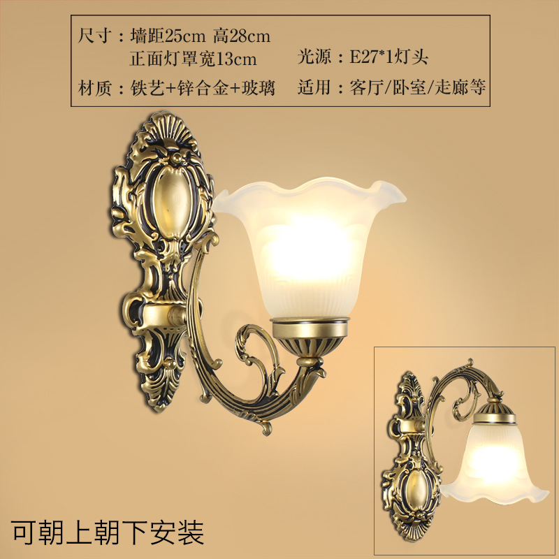 벽 램프 머리맡 램프 새로운 침실 램프 단일 헤드 거실 TV 배경 벽 유럽 복고풍 간단한 복도 벽 램프스토어 가기