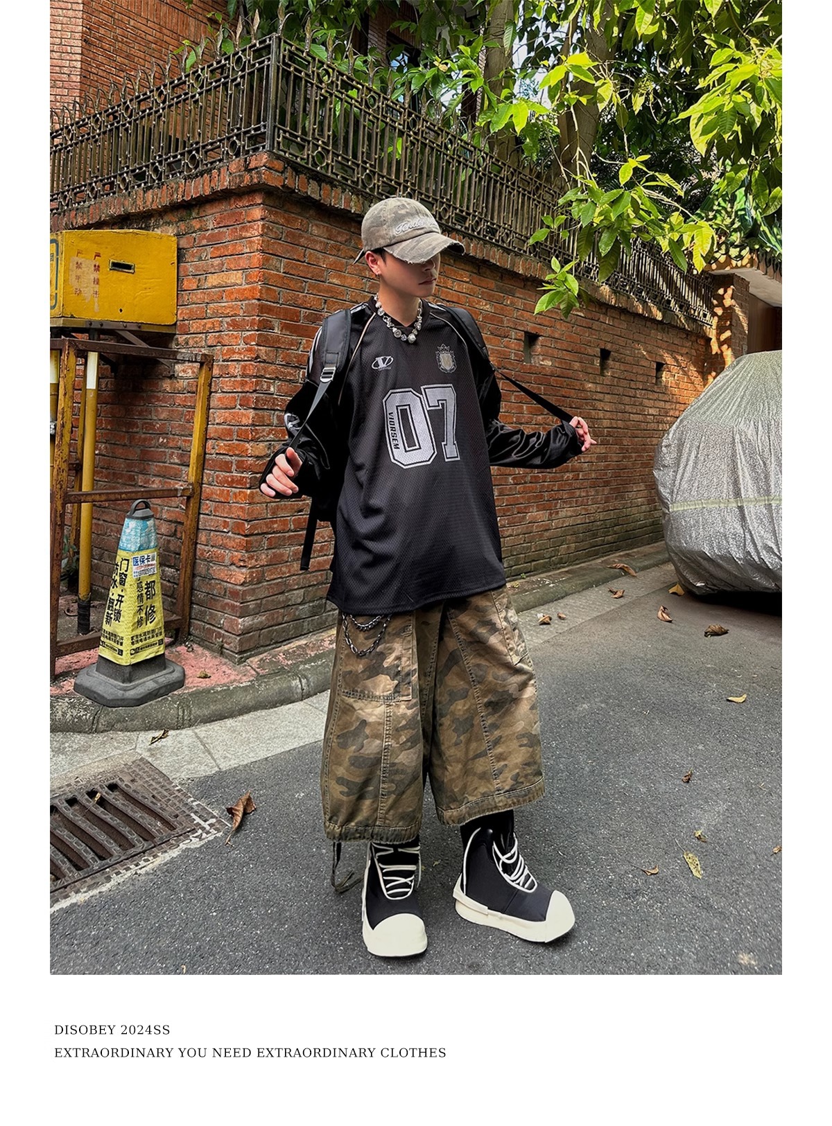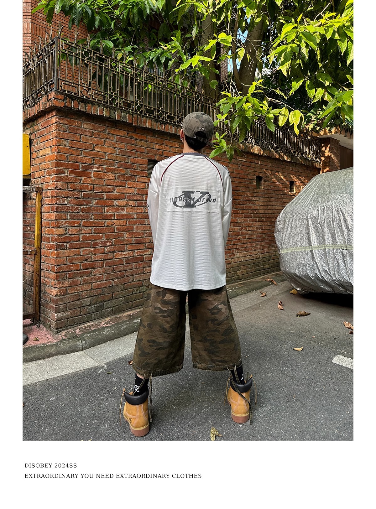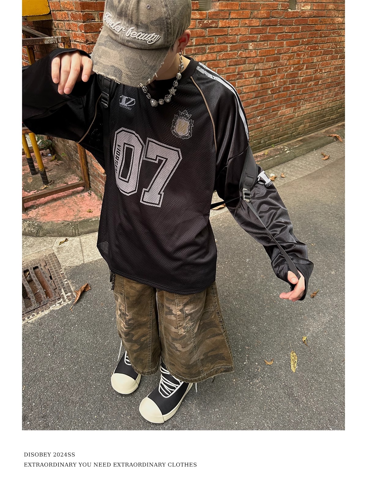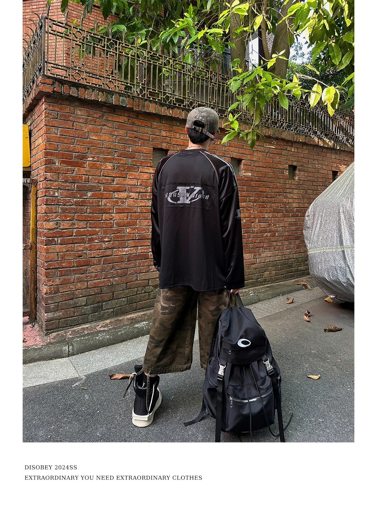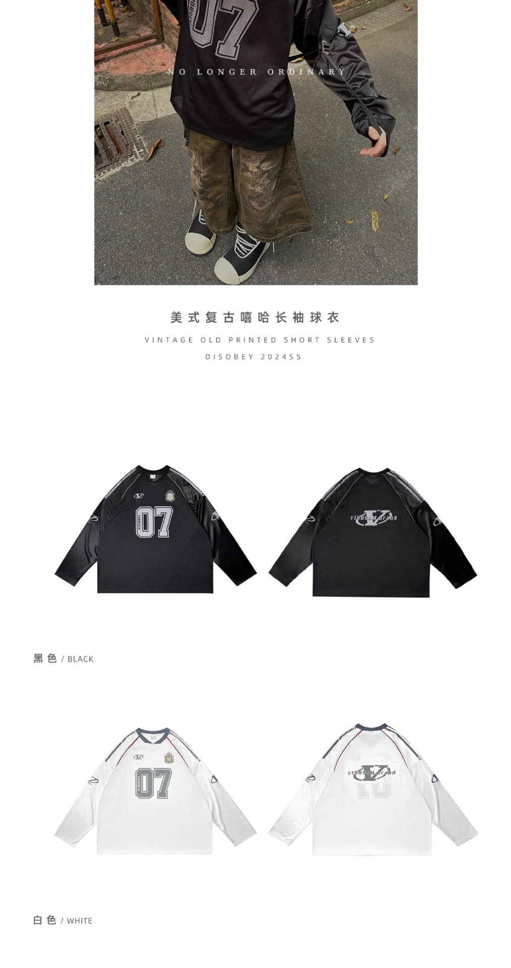 아메리칸 스타일 레트로 레터 프린트 메쉬 긴팔 티셔츠 남자 여름 뉴 니치 스트리트 올 매치 루즈 저지 트렌디스토어 가기