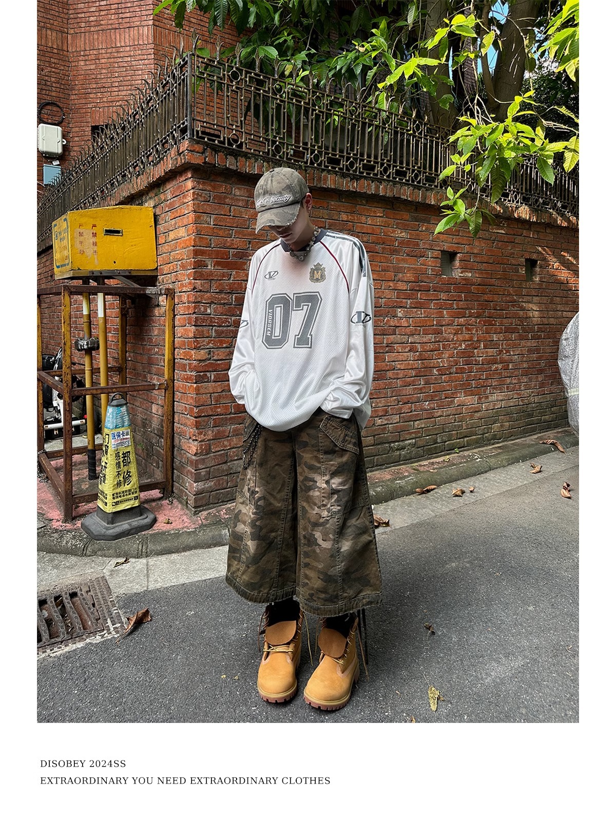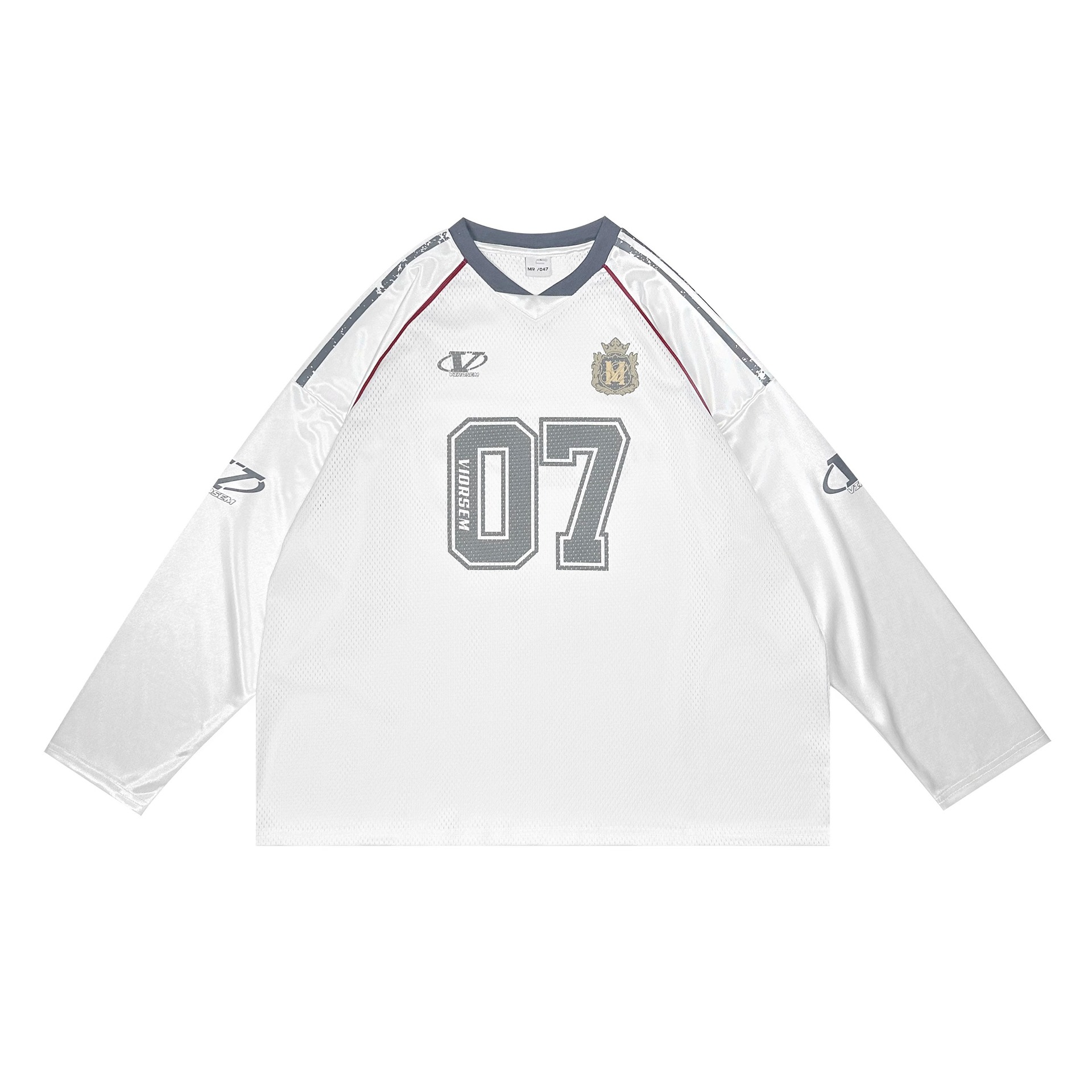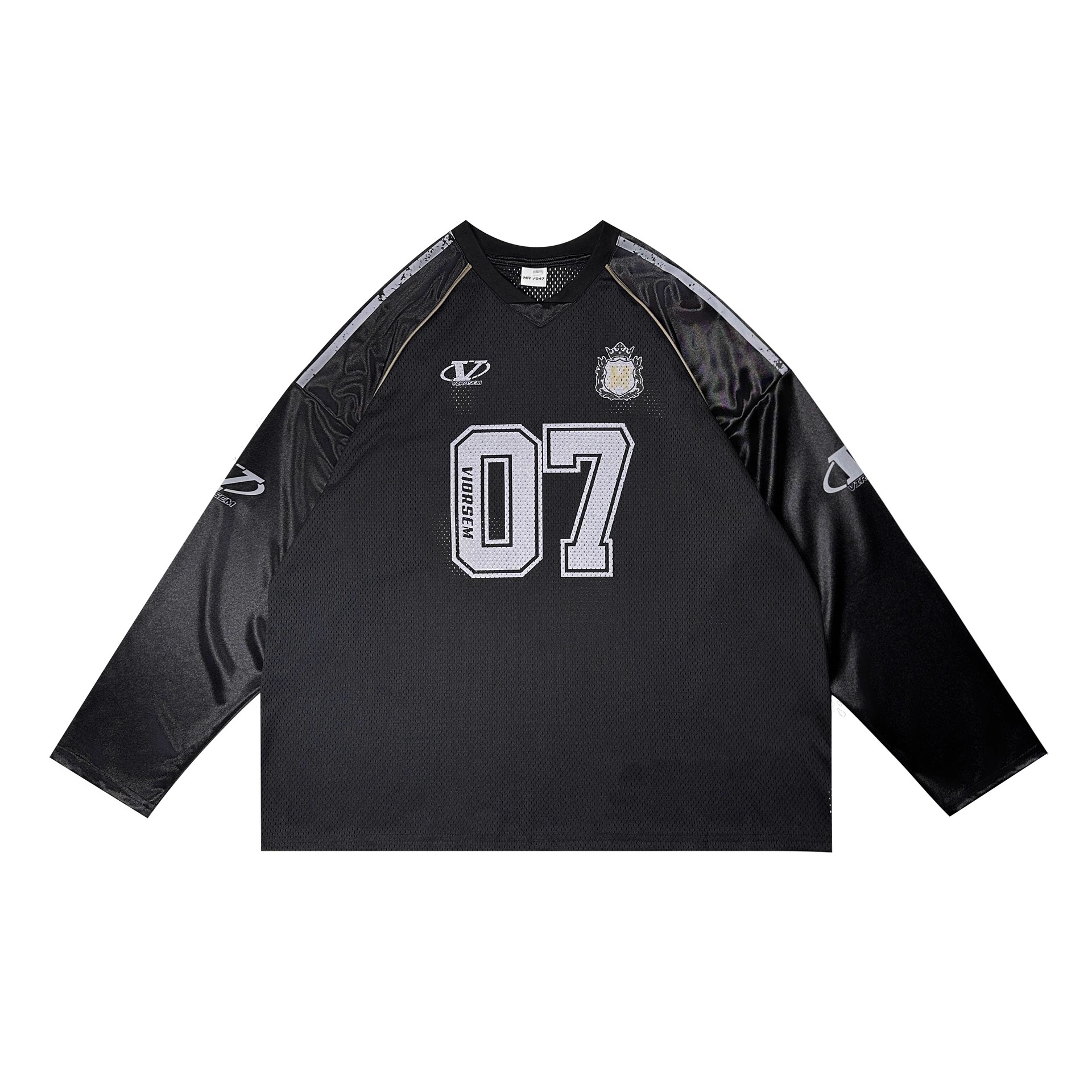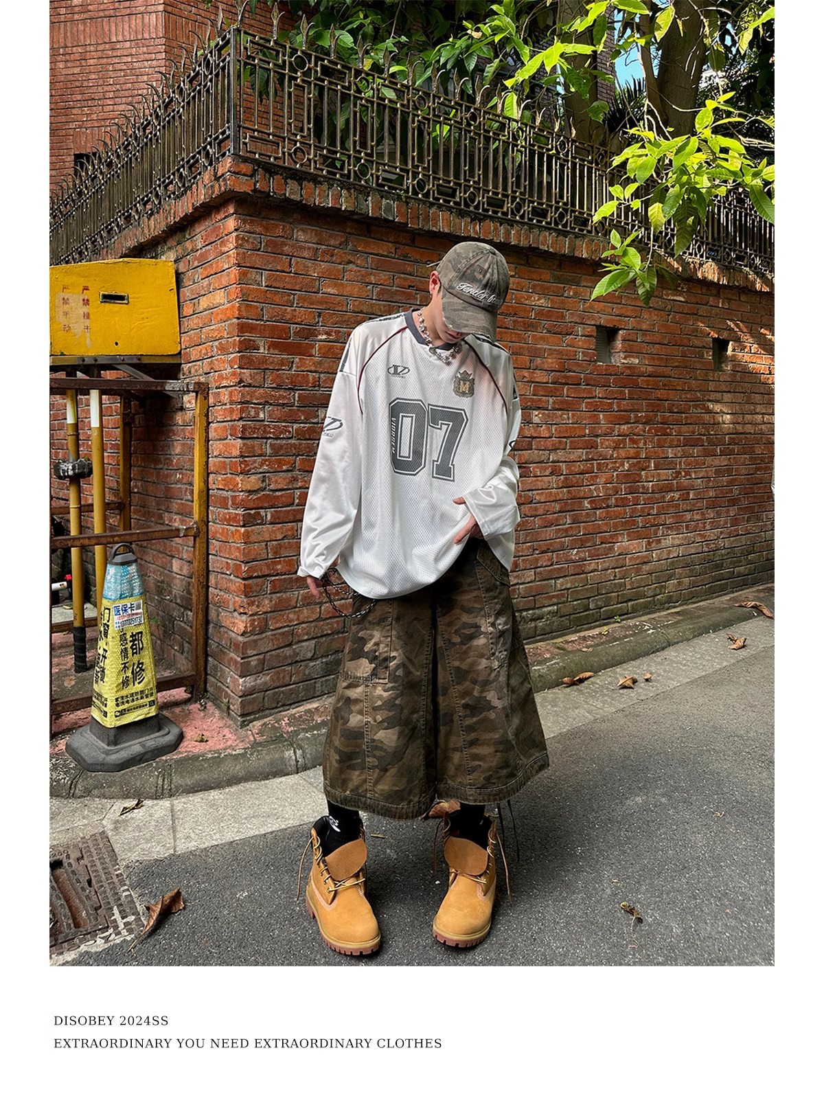 아메리칸 스타일 레트로 레터 프린트 메쉬 긴팔 티셔츠 남자 여름 뉴 니치 스트리트 올 매치 루즈 저지 트렌디