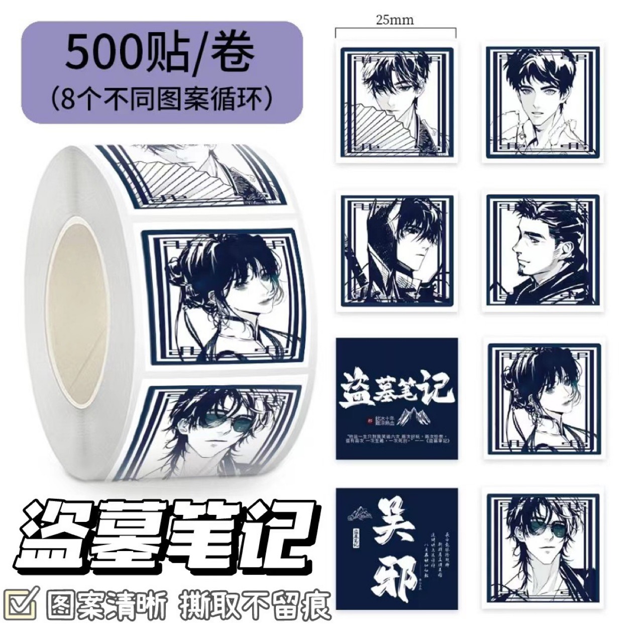 스티커 롤 500 스틱 무덤 강탈 노트 봉인 페이스트 diy 흑백 오픈 스피릿 계정 스티커 절단 테이프 도매스토어 가기