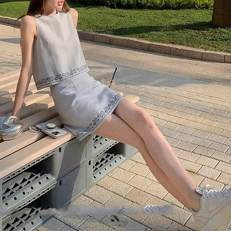 개인 의류 작은 샤넬 스타일 유행 우아한 새 여름 민소매 조끼 짧은 치마 세트 여성 투피스 디자인 센스 트렌디스토어 가기