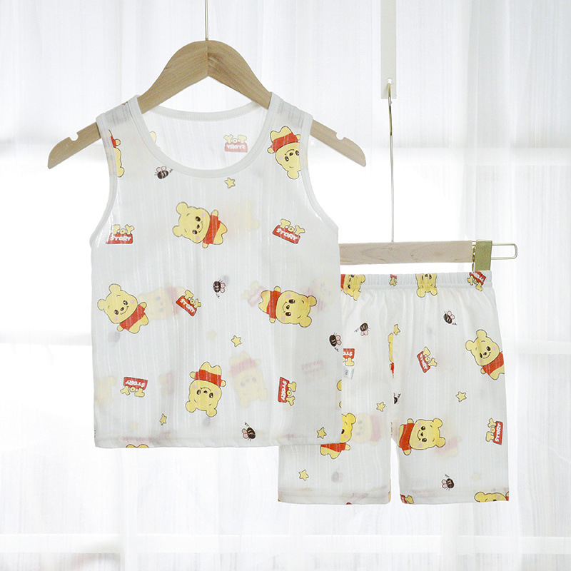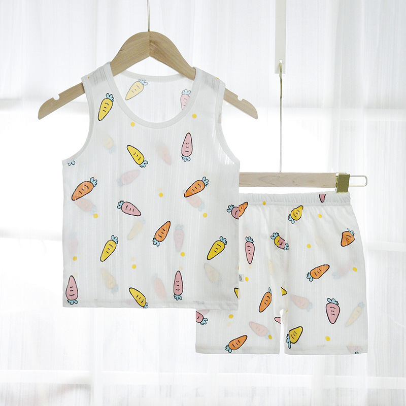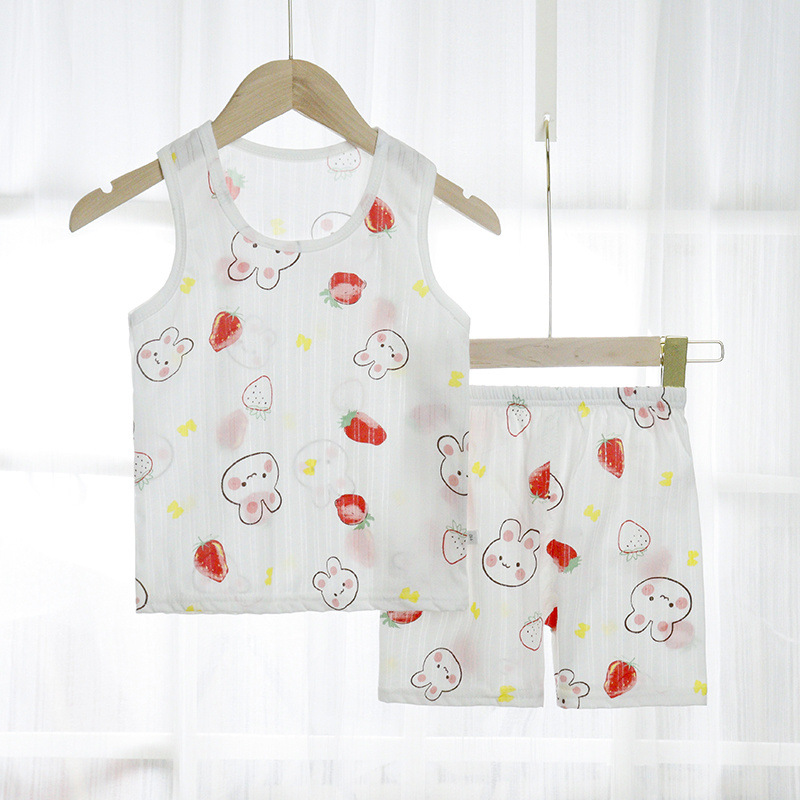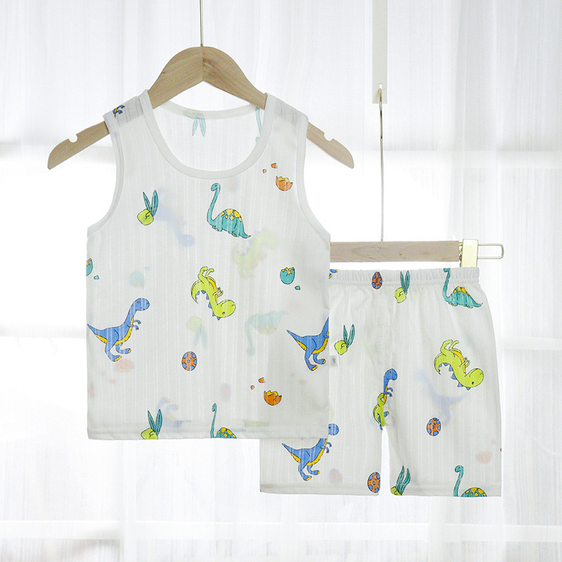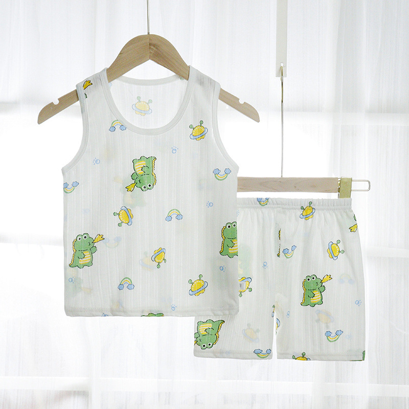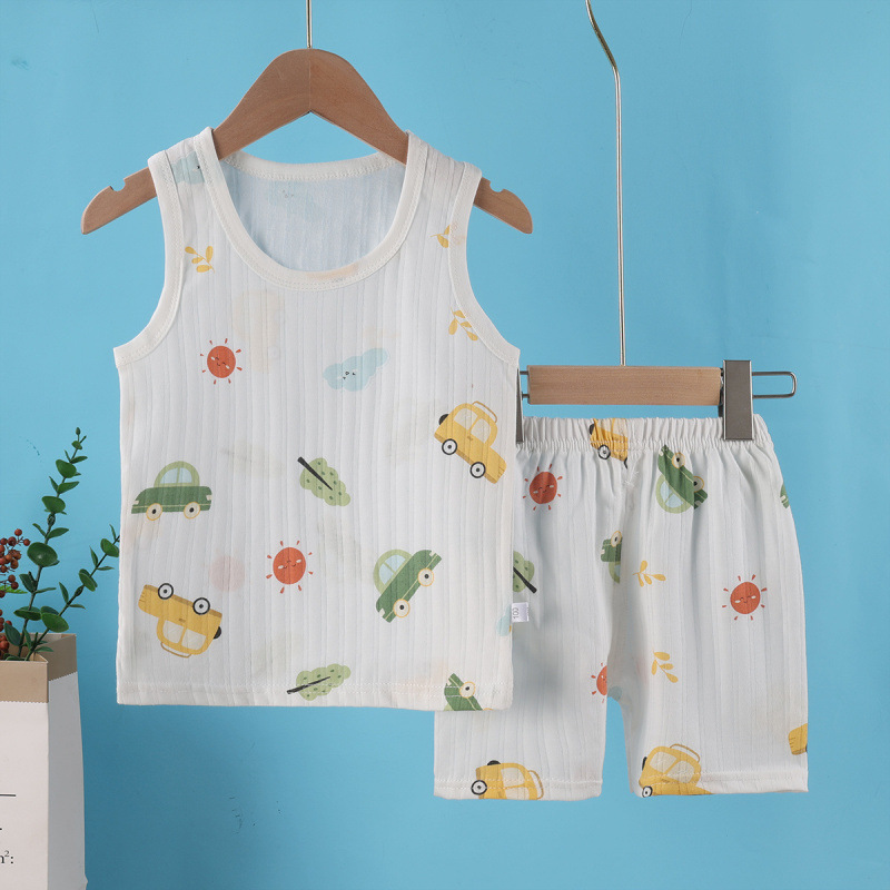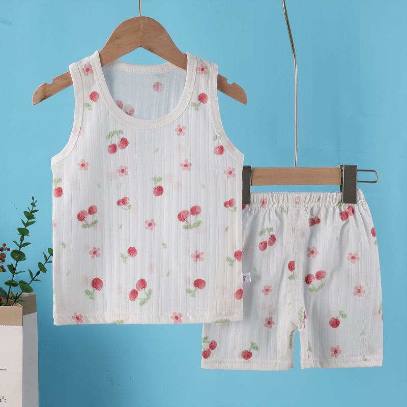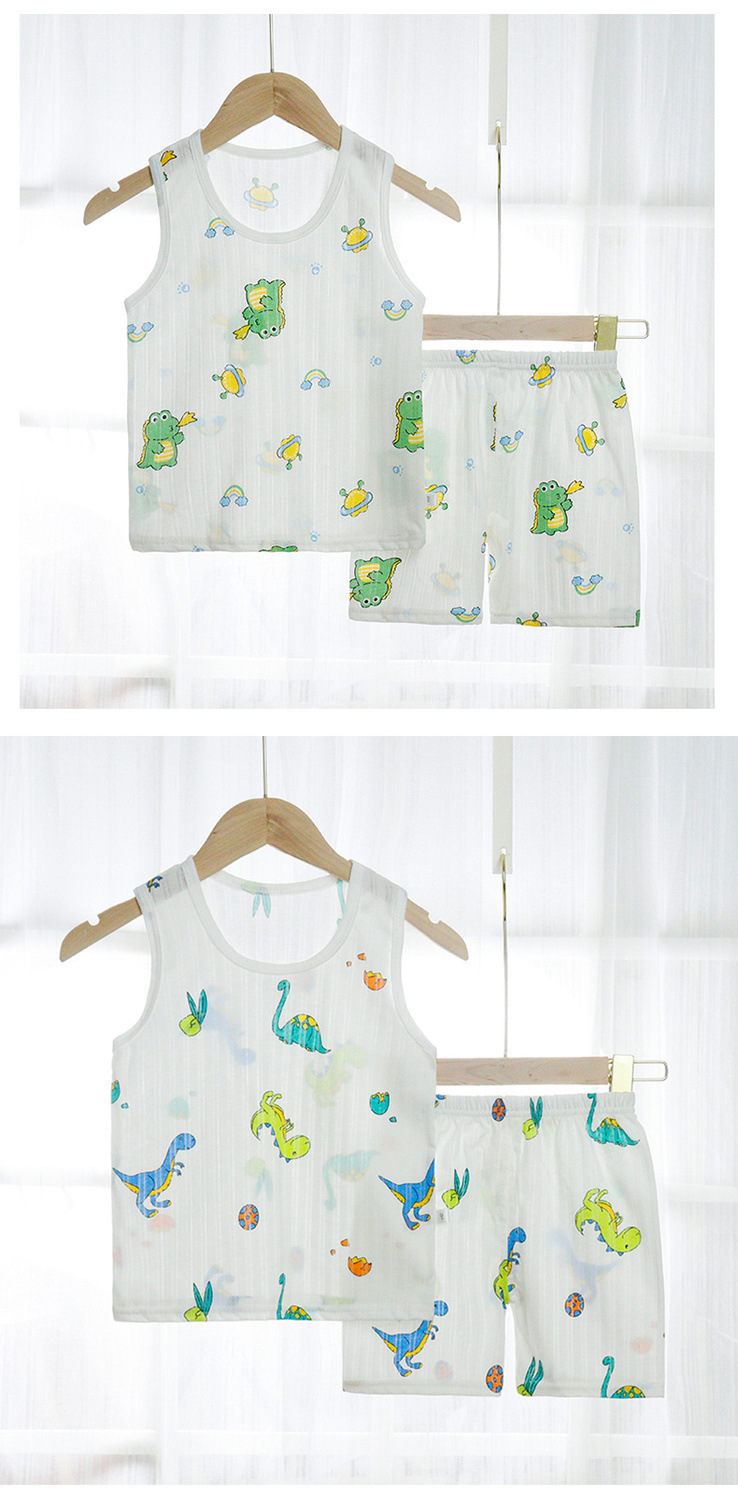 여름 베이비 코튼 조끼 세트 반바지 카테고리 a 민소매 0-7 남성과 여성의 얇은 면화 잠옷 투피스 세트