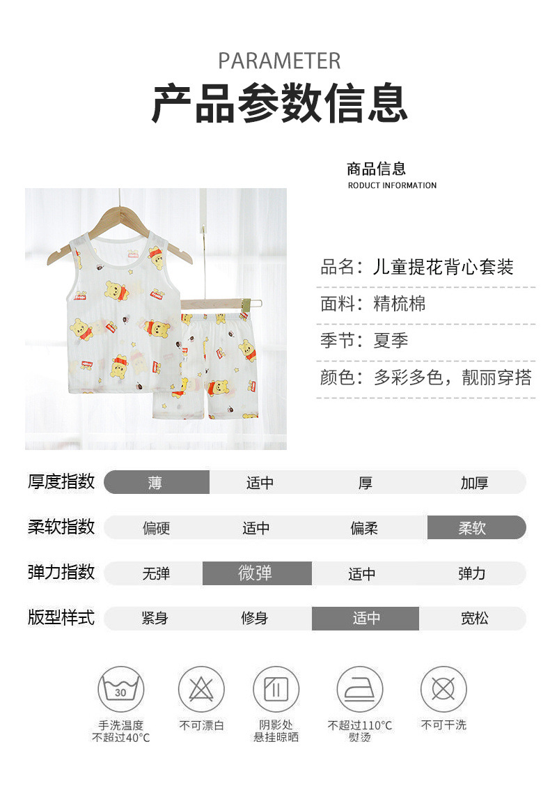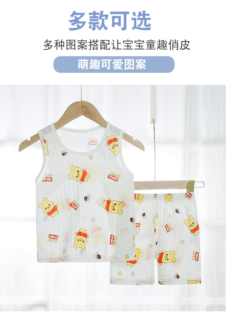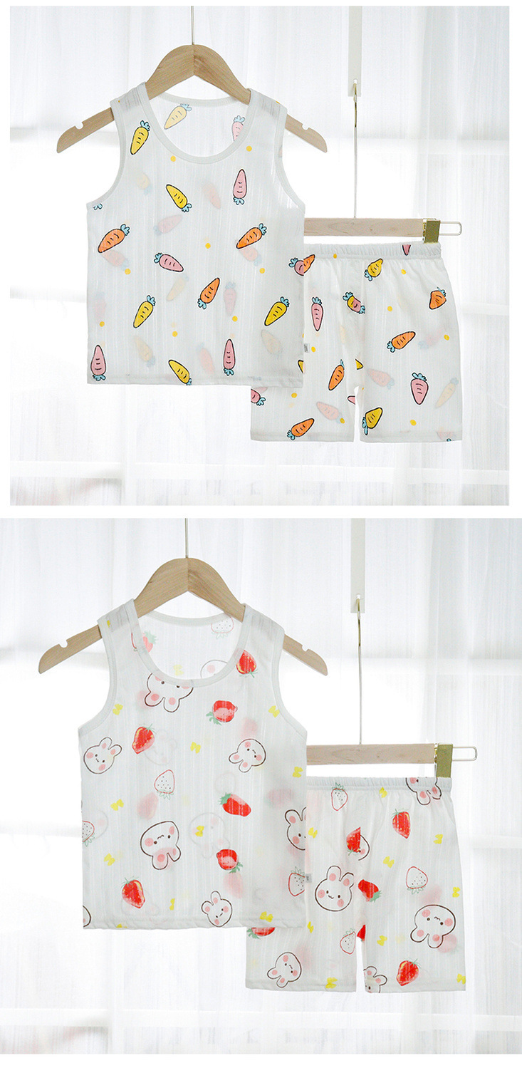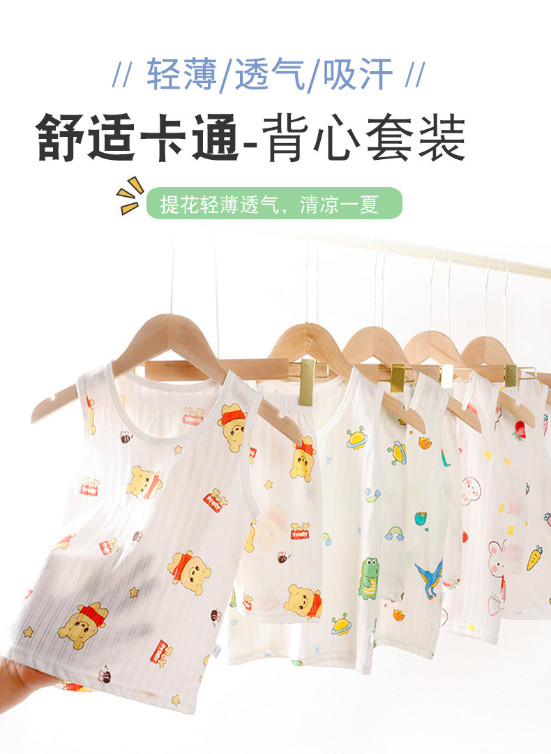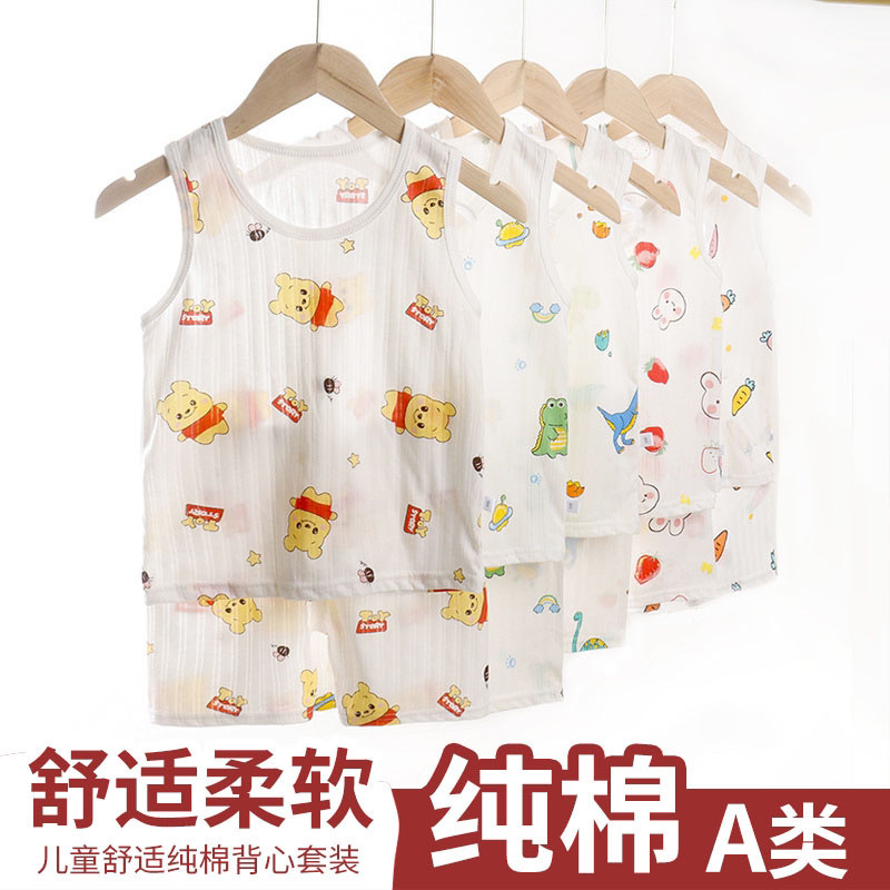여름 베이비 코튼 조끼 세트 반바지 카테고리 a 민소매 0-7 남성과 여성의 얇은 면화 잠옷 투피스 세트스토어 가기