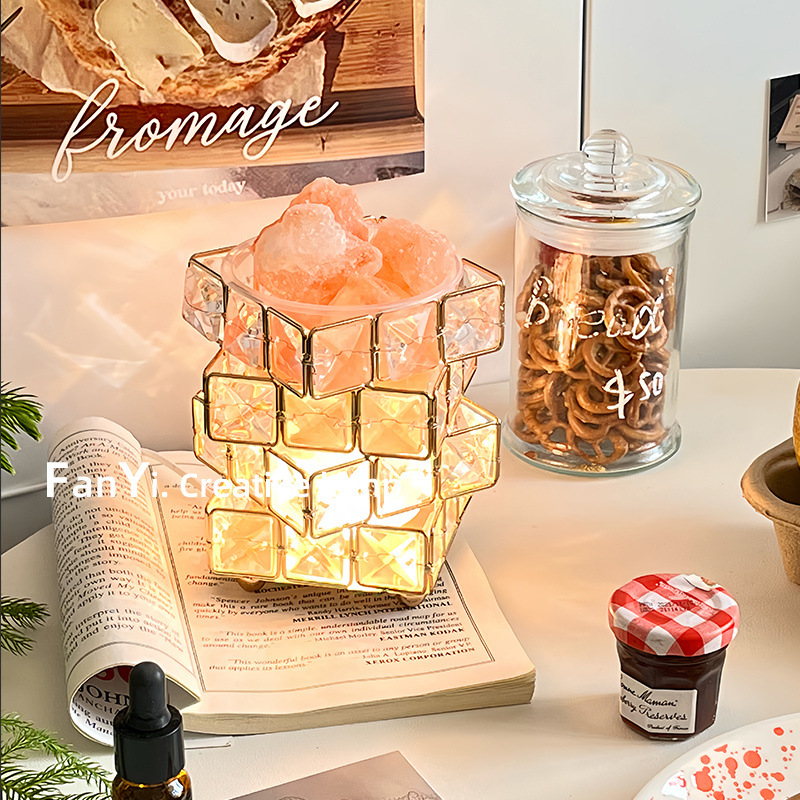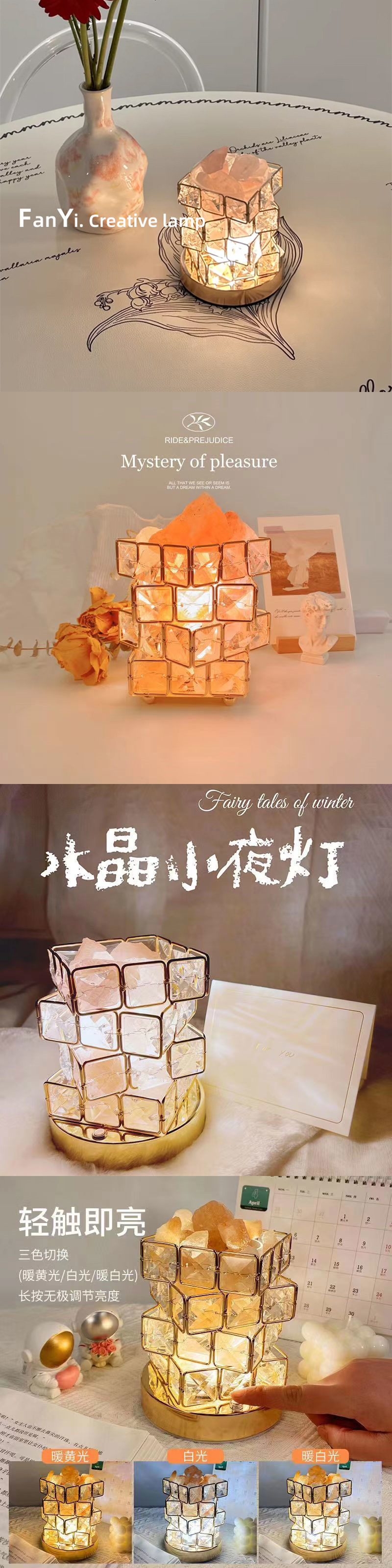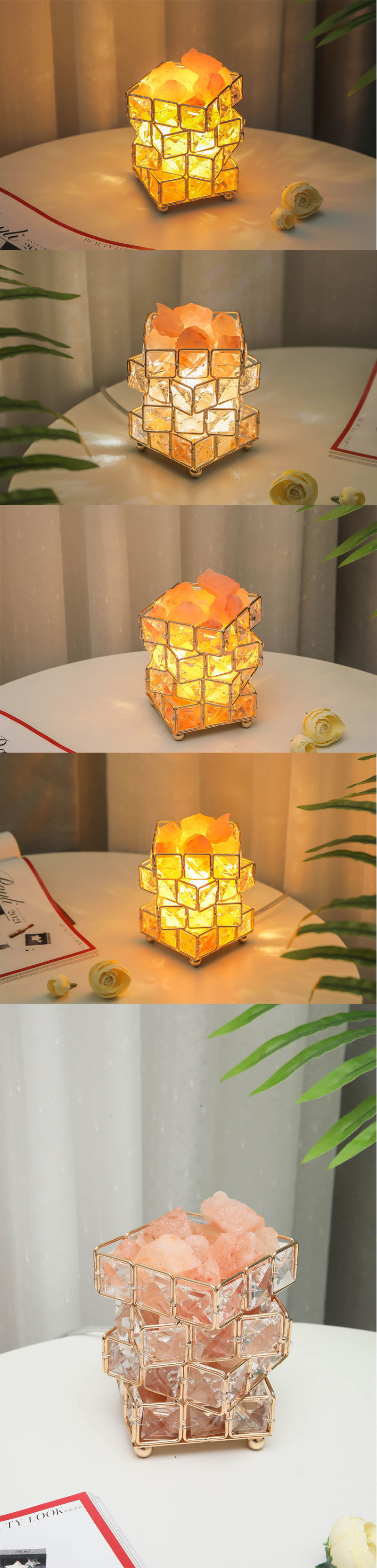 루빅스 큐브 히말라야 크리스탈 라이트 분위기 램프 루빅스 큐브 침실 소녀 장식 데스크탑 침대 옆 충전식 테이블 램프