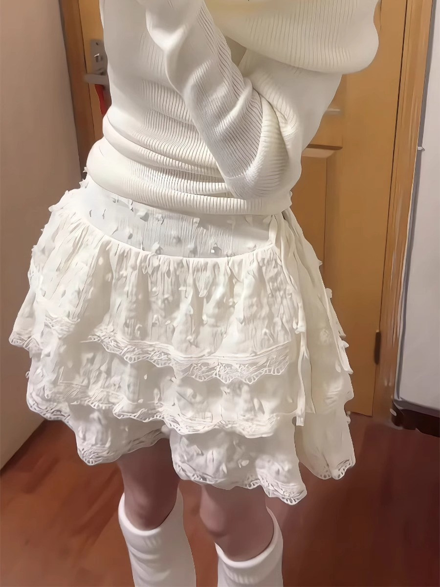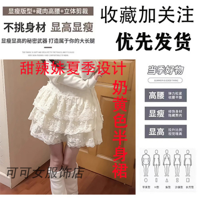 여름 디자인의 여성용 달콤한 핫걸 밀크 옐로우 스커트, 작은 레이스 케이크 스커트, 하이웨이스트 퍼프 스커트스토어 가기