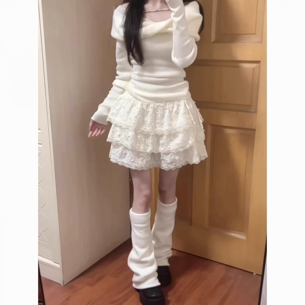 여름 디자인의 여성용 달콤한 핫걸 밀크 옐로우 스커트, 작은 레이스 케이크 스커트, 하이웨이스트 퍼프 스커트