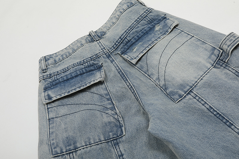 시원한 잘 생긴 힙합 올드 워시 툴링 데님 바지 남녀 디자인 센스 중공업 스플릿 스티칭 와이드 레그 스트레이트 레그 팬츠스토어 가기