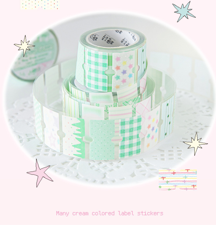 설탕시 크림 라벨 스티커 시리즈 플래시 모래 테이프 귀여운 조커 소재 손 계정 Diy 장식 라벨 스티커