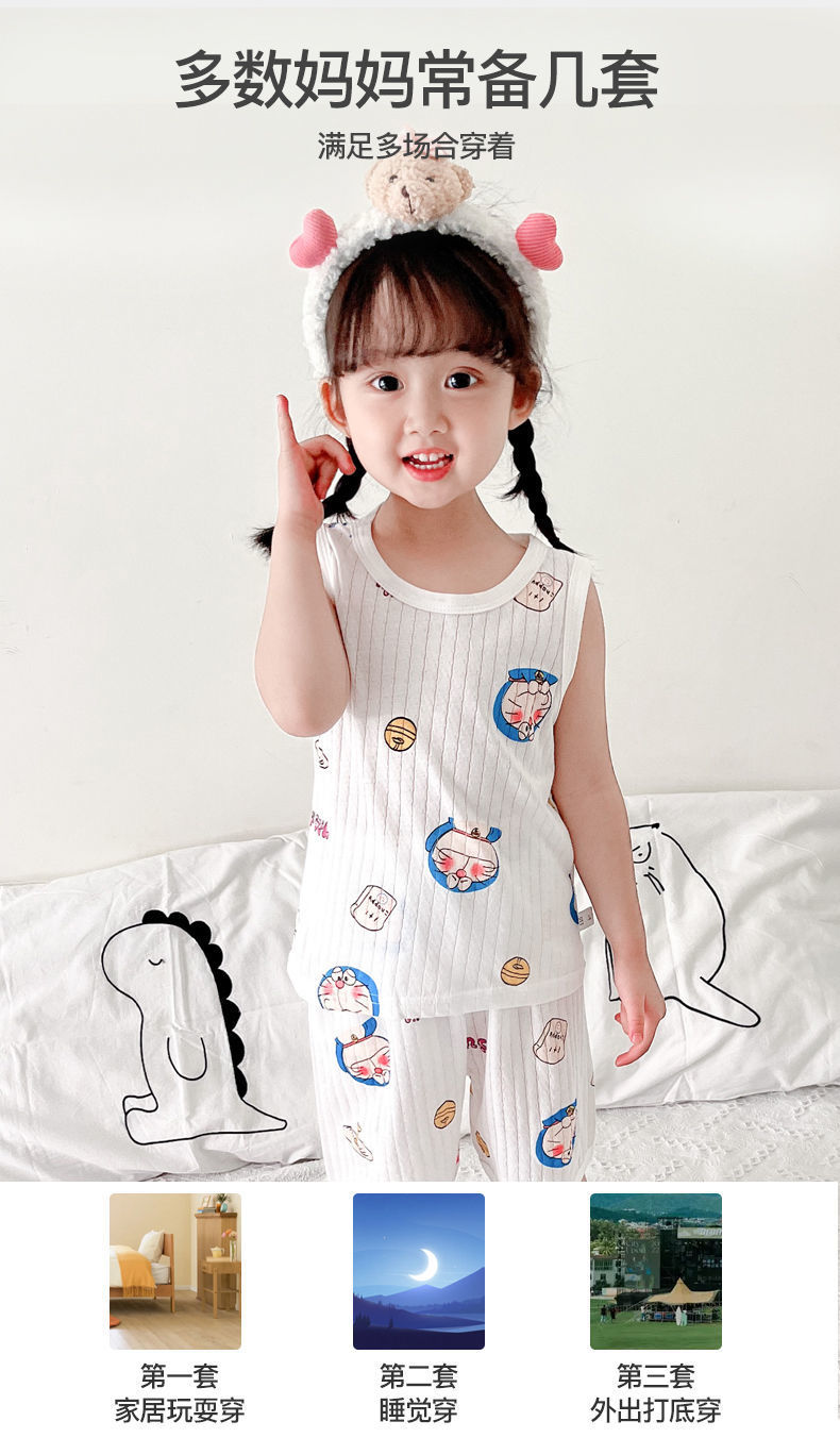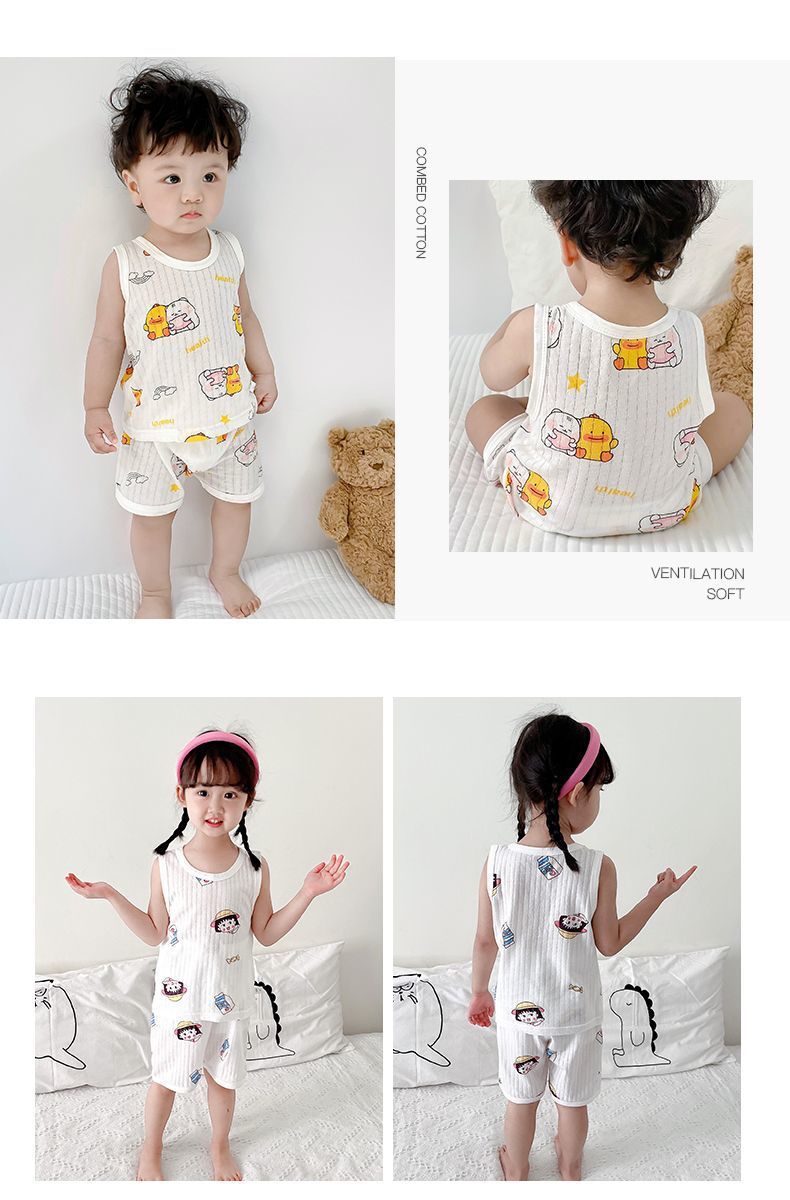 아동 조끼 세트 여름 얇은 겉옷 조끼 A 스타일 반바지 100면 아동 잠옷 조끼 반바지스토어 가기