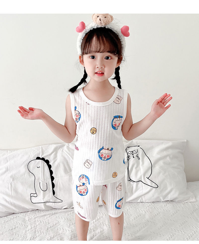 아동 조끼 세트 여름 얇은 겉옷 조끼 A 스타일 반바지 100면 아동 잠옷 조끼 반바지