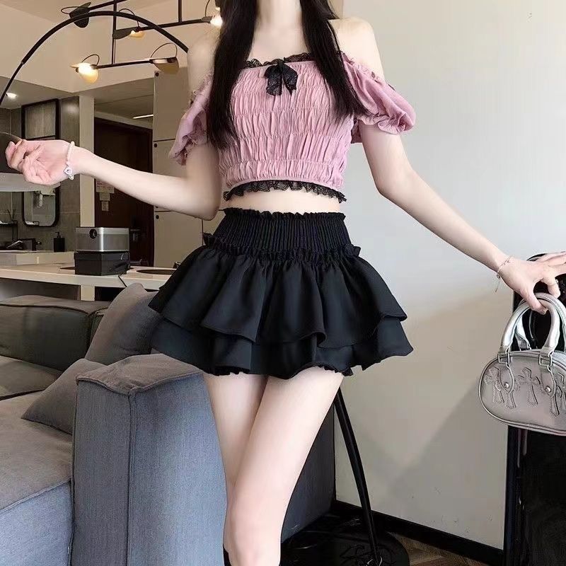 몸집이 작은 여성을 위한 귀엽고 달콤한 발레 스타일 스커트, 하이웨이스트 슬리밍 케이크 퍼프 스커트, 트렌디한 여성용 스커트스토어 가기