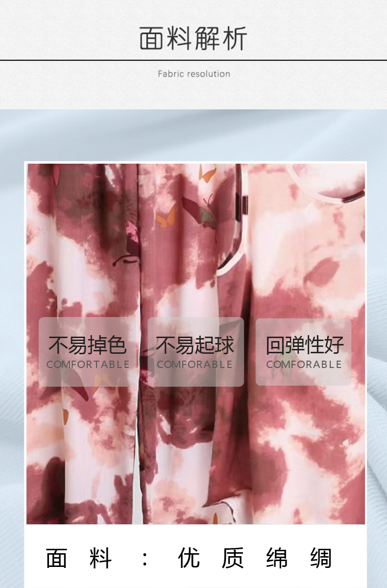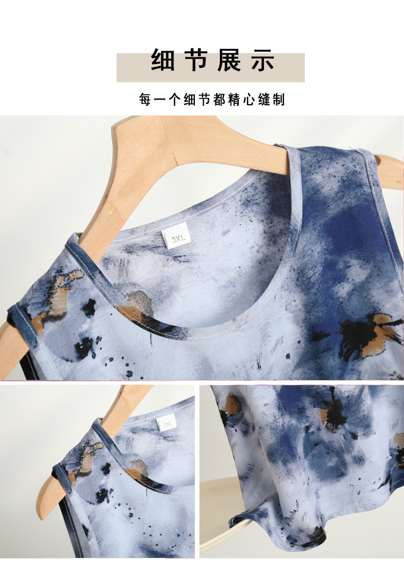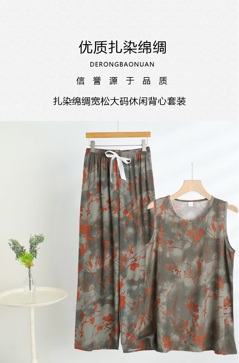코튼 실크 파자마 여성의 여름 새로운 민소매 조끼 와이드 레그 팬츠 2 피스 넥타이 염색 인공면 의상 홈 의류스토어 가기