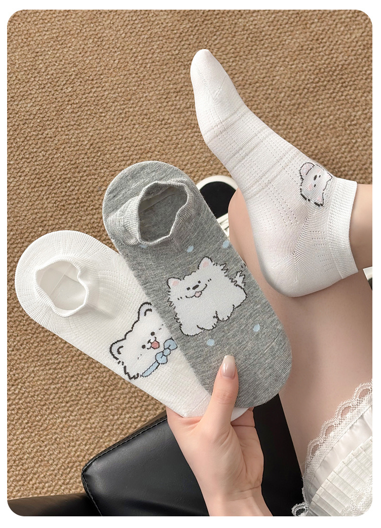 Ins 한국 동대문 만화 귀여운 강아지 보트 양말 여성 여름 얇은 메쉬 시원한 2025 새로운 양말스토어 가기