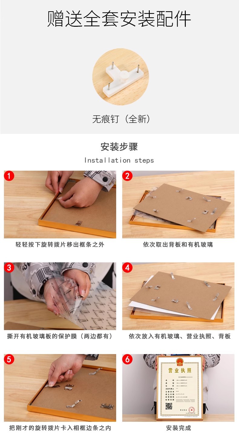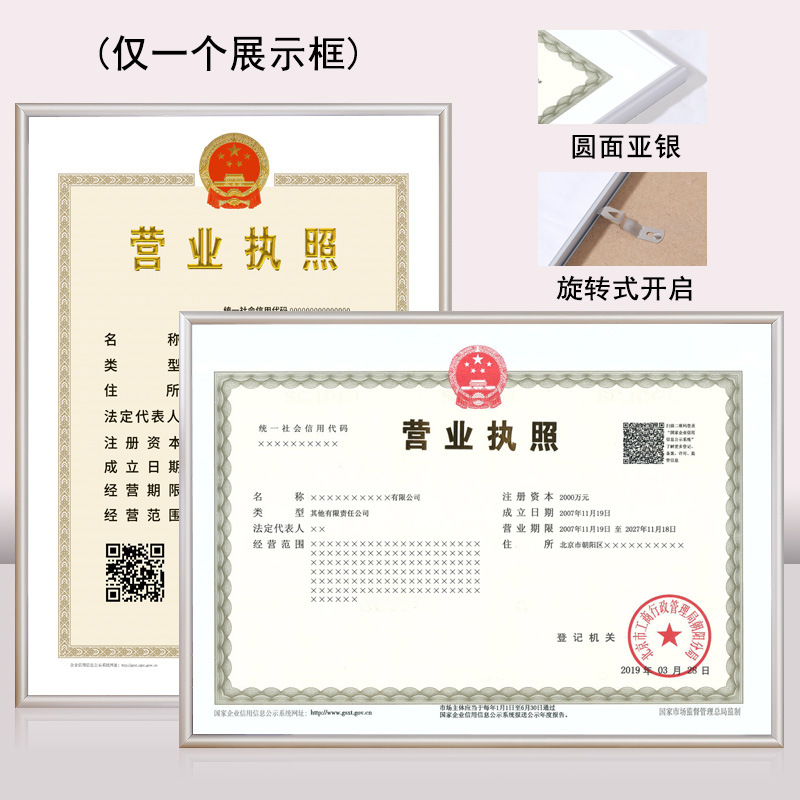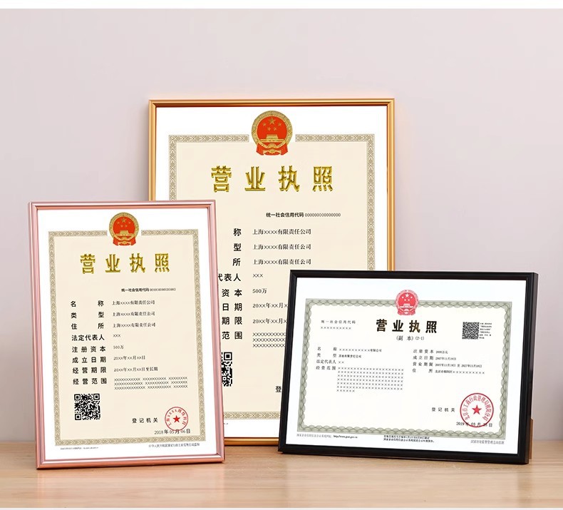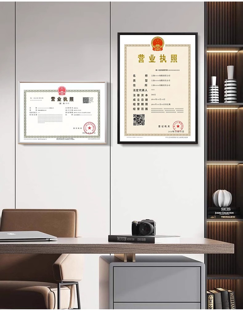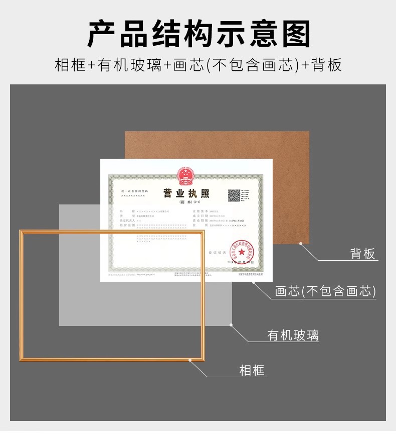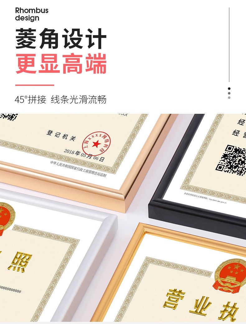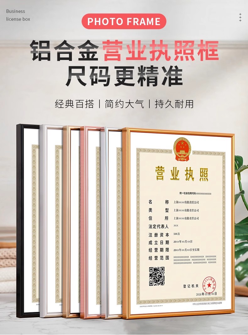 알루미늄 합금 사업 면허 프레임 워크 a4A3 원래 및 중복 건강 면허 테이블 디스플레이 사진 프레임 벽 교수형스토어 가기