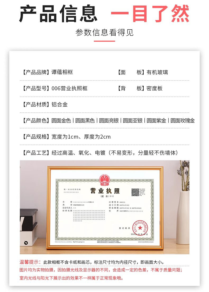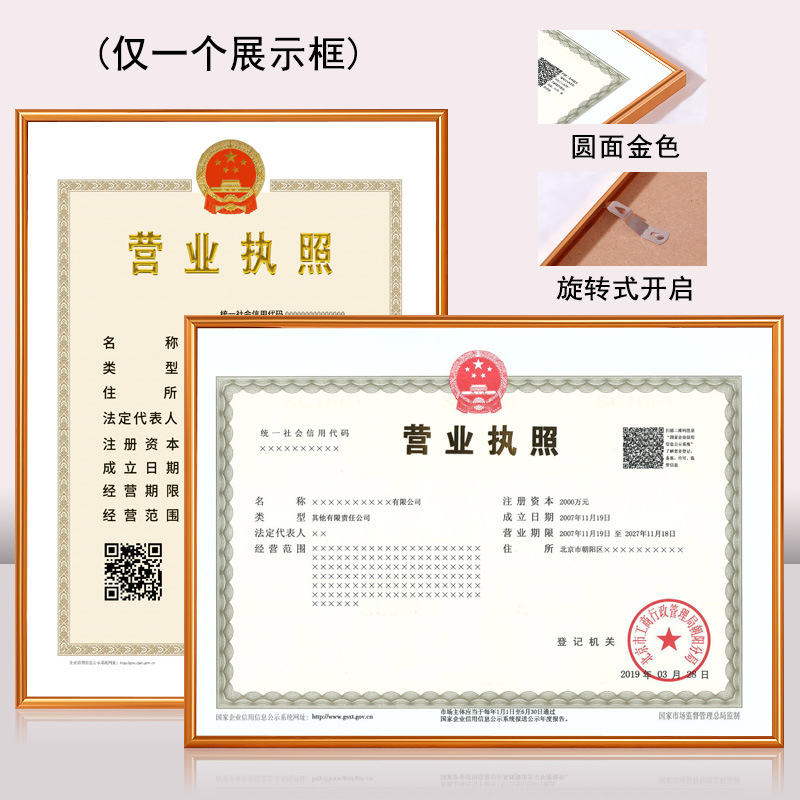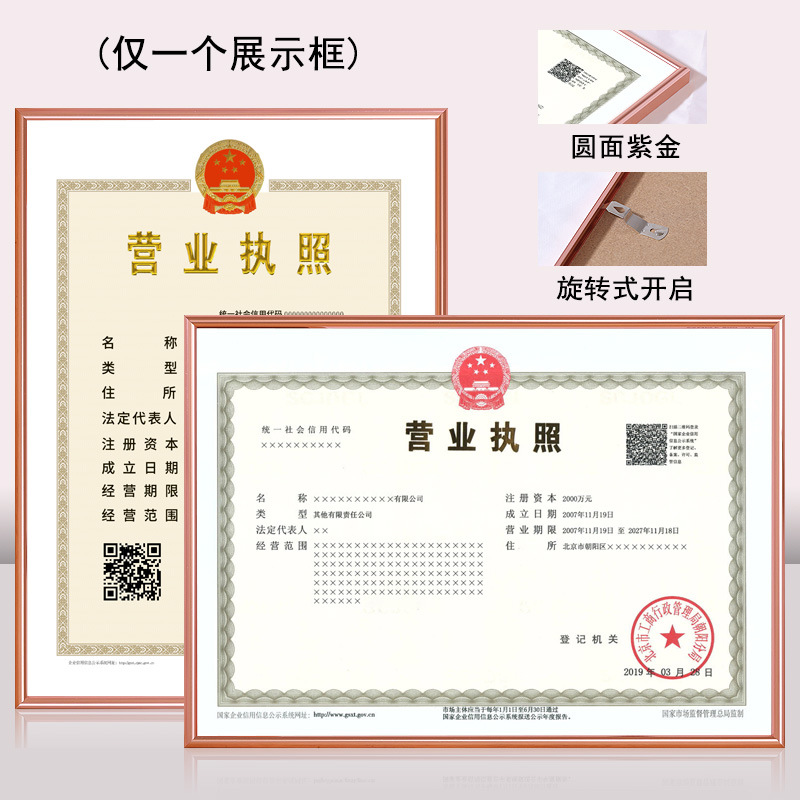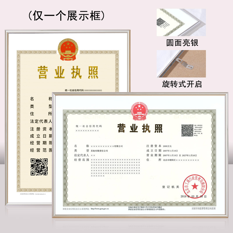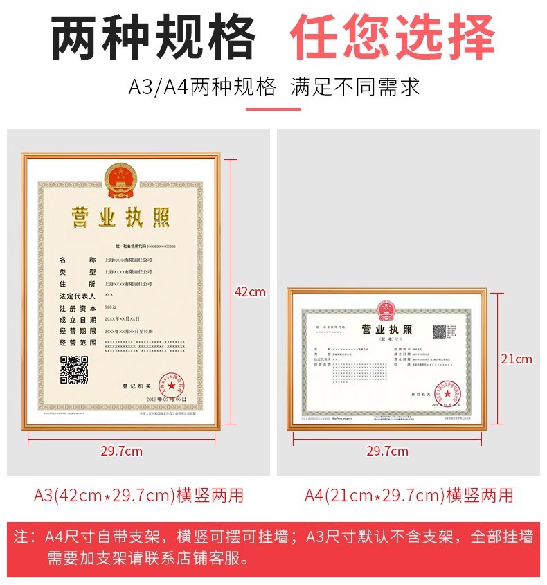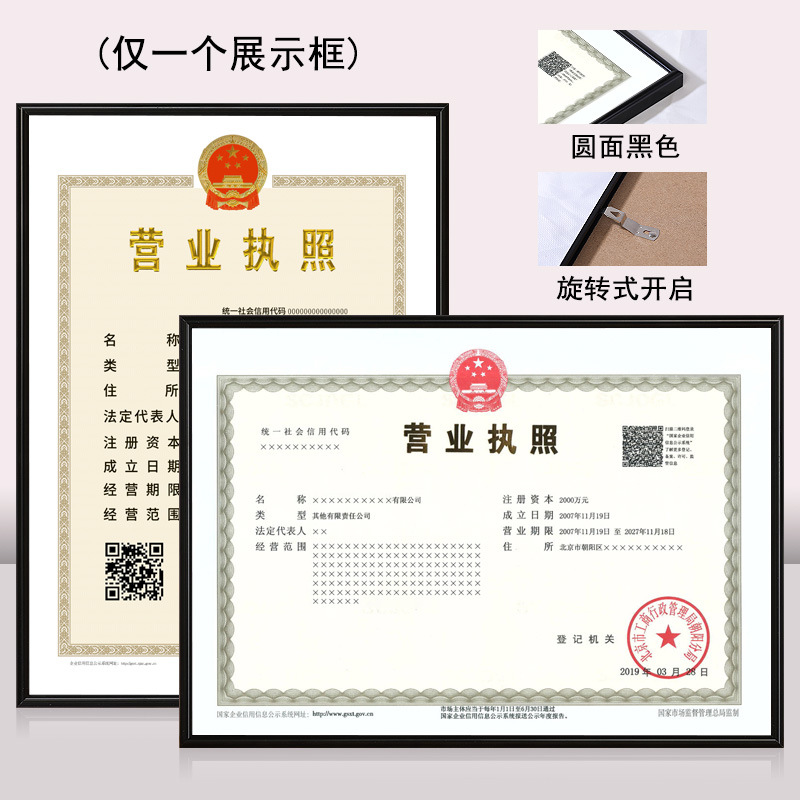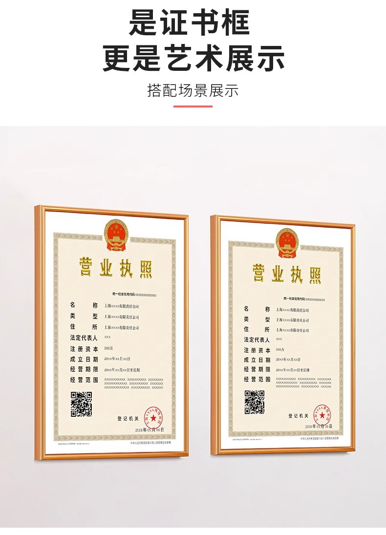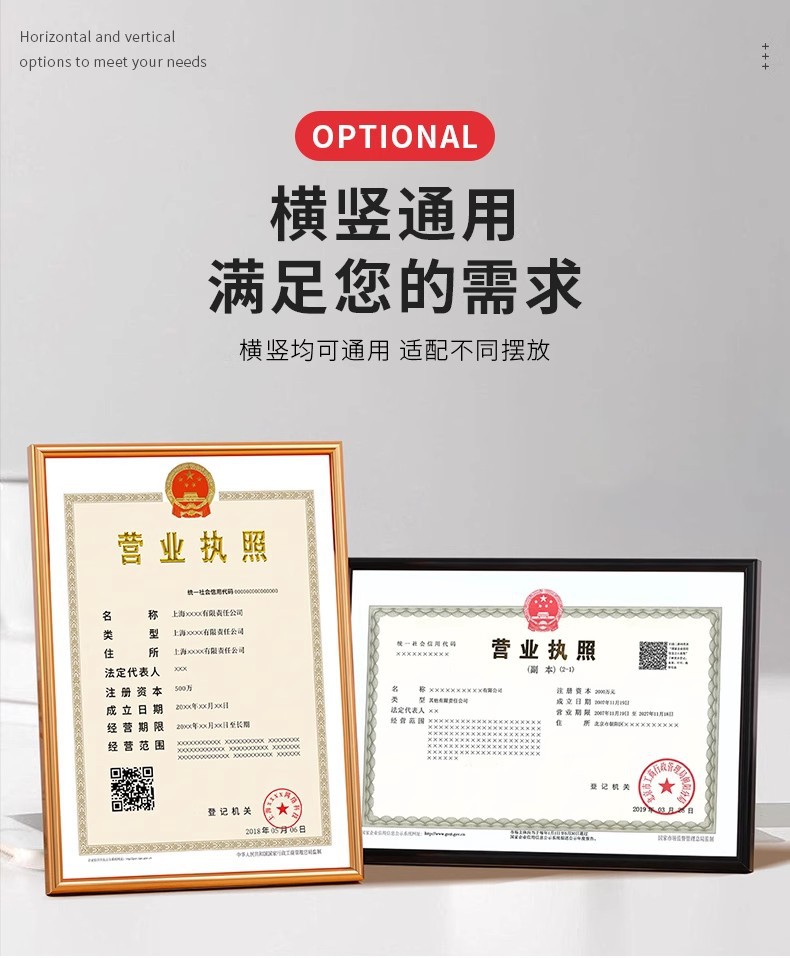 알루미늄 합금 사업 면허 프레임 워크 a4A3 원래 및 중복 건강 면허 테이블 디스플레이 사진 프레임 벽 교수형스토어 가기