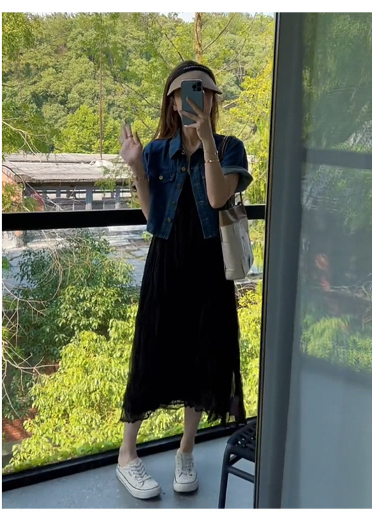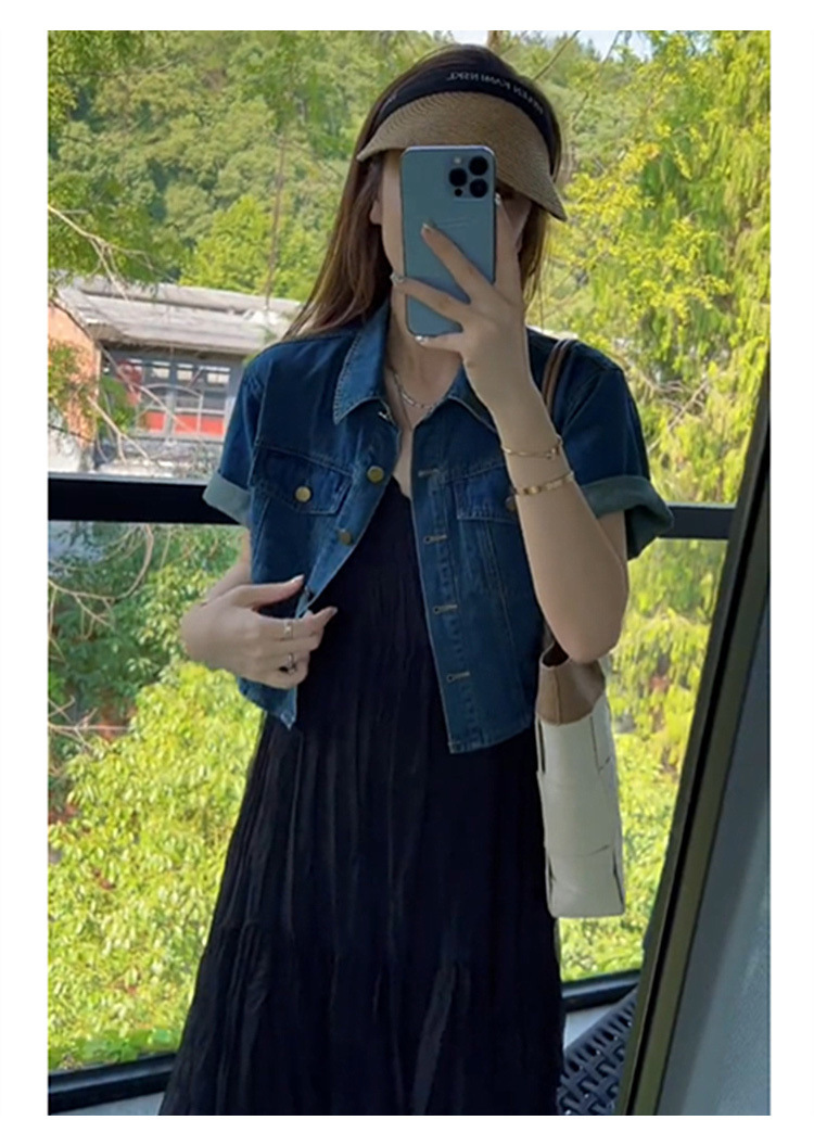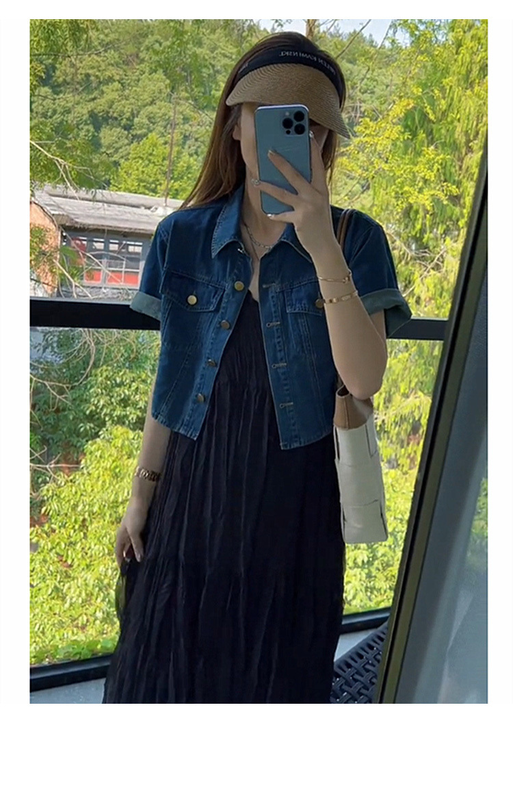 외부 데님 재킷 여자 2025 봄 여름 한국 스타일 새로운 올 매치 짧은 소매 캐주얼 셔츠 작은 짧은 탑스토어 가기